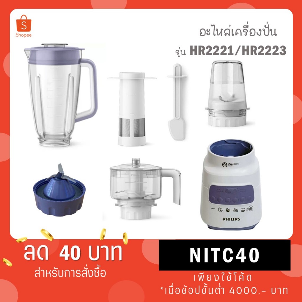 โถปั่นแห้ง โถน้ำ ใบมีด - เครื่องปั่นอเนกประสงค์ Philips รุ่น HR2221 / HR2223