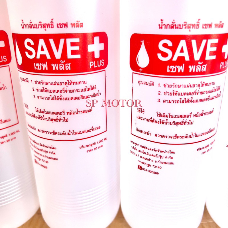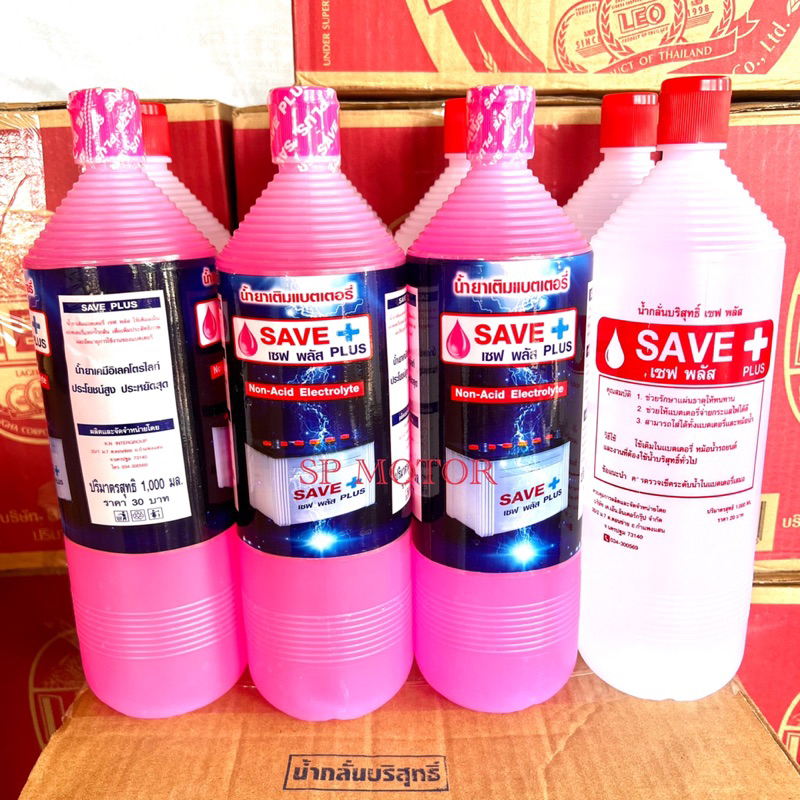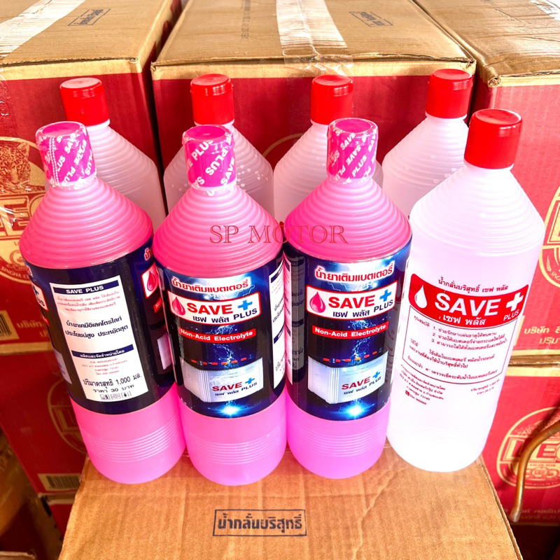 น้ำกลั่นบริสุทธิ์เซฟพลัสSAVE+PLUS น้ำกลั่นสีขาว น้ำกลั่นสีชมพูขนาด100ml. ใช้เติมในแบตเตอรี่ หม้อน้ำรถยนต์