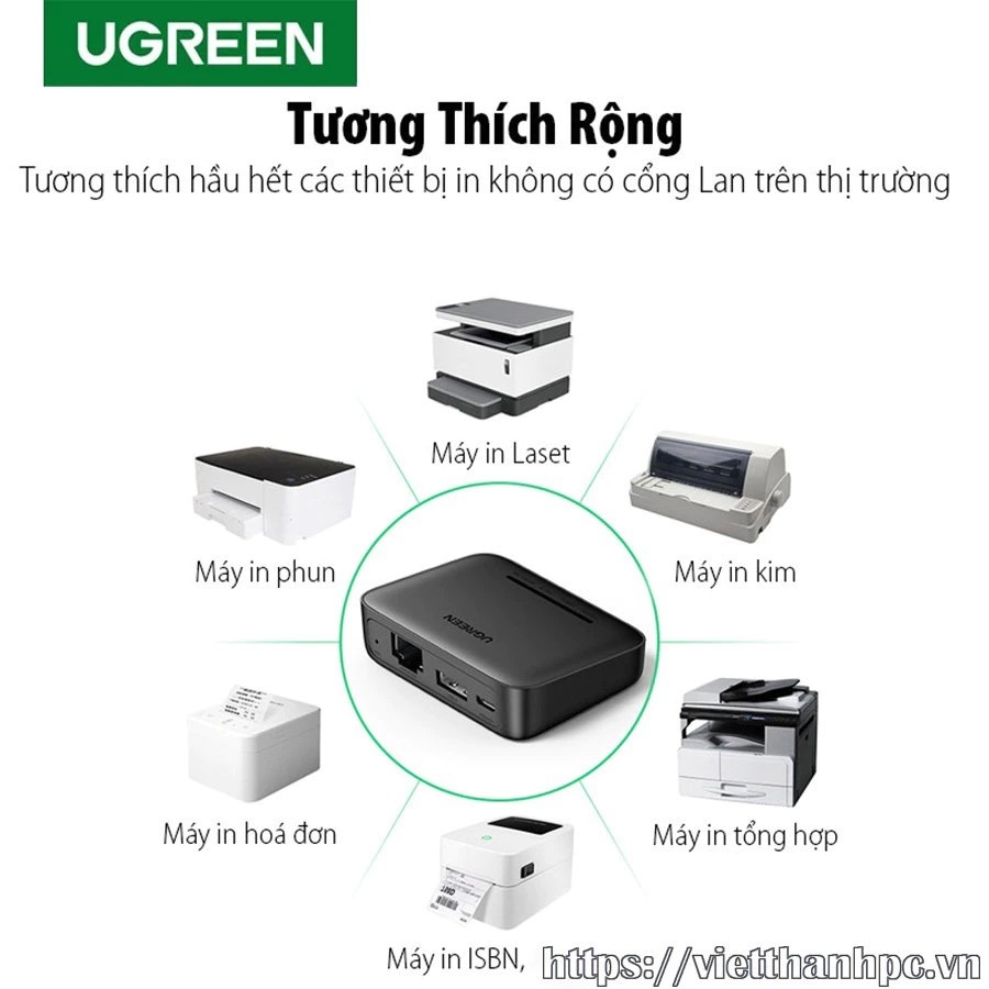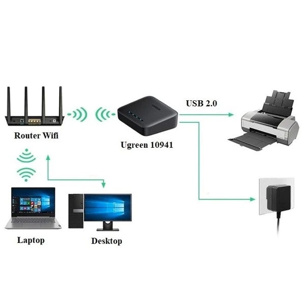 UGREEN 10941 แชร์ปริ้นเตอร์ External USB Network Print Server For Raw Printer