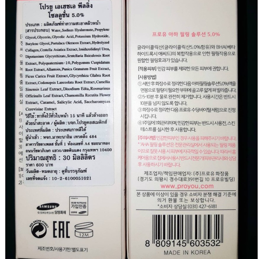Pro You 𝐀𝐇𝐀 𝐏𝐞𝐞𝐥𝐢𝐧𝐠 𝐒𝐨𝐥𝐮𝐭𝐢𝐨𝐧 𝟓% Glycolic + ฺBHA Peeling Solution แบบเดียวกับร้านเกาหลี Made in Korea