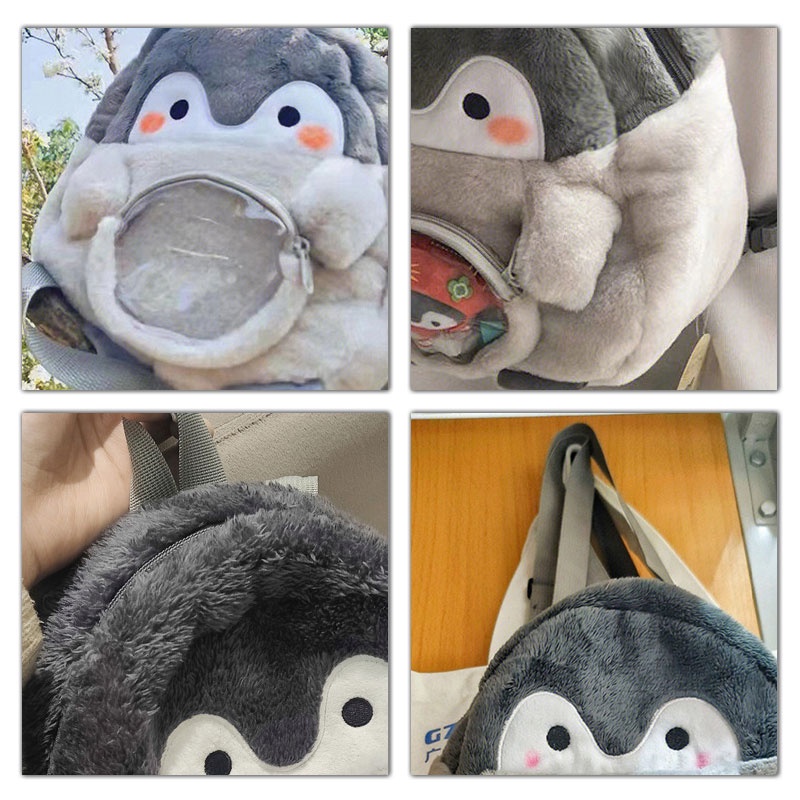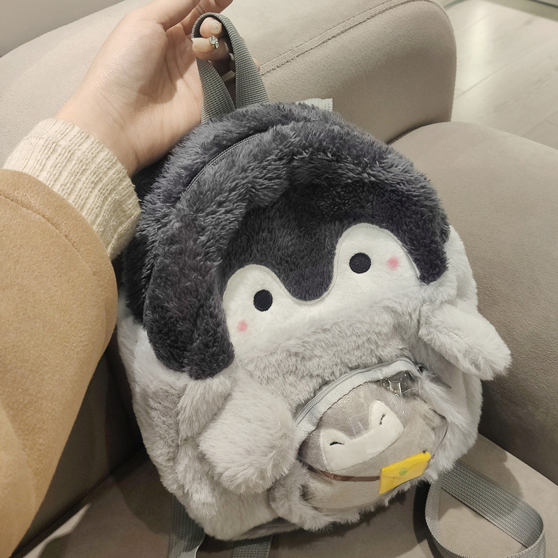 TAIDU กระเป๋าเป้สะพายหลัง ผ้ากํามะหยี่ขนนิ่ม ลายการ์ตูนเพนกวินน่ารัก ขนาดมินิ สําหรับนักเรียน