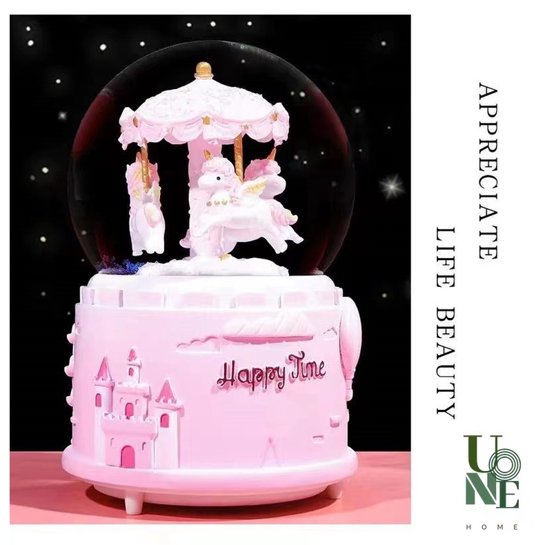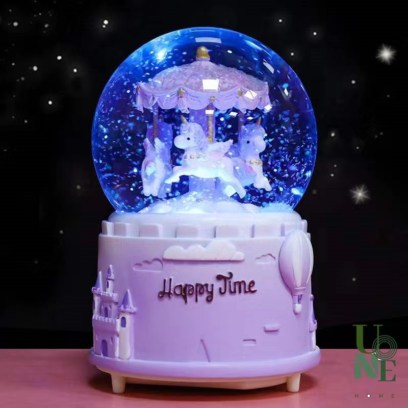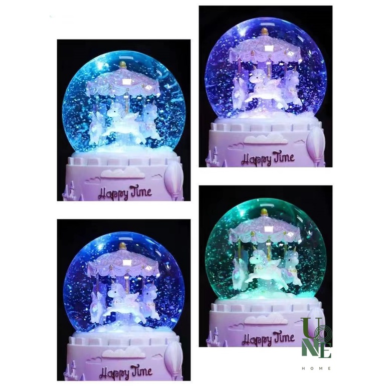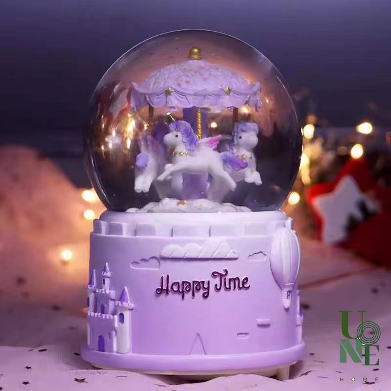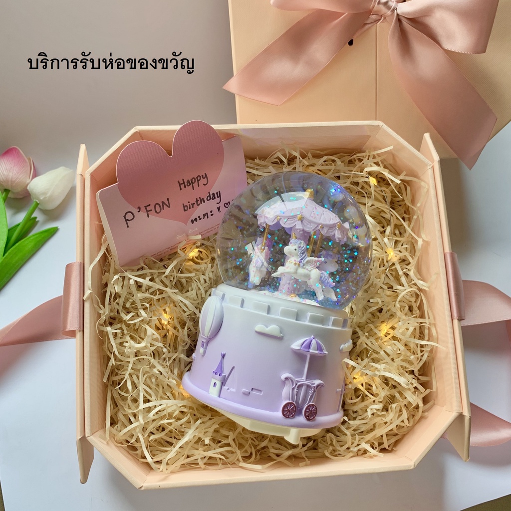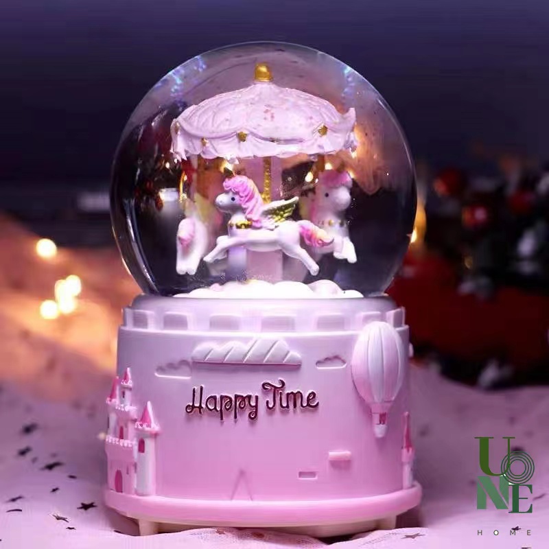 UoneHome พร้อมส่ง ♥ H051 กล่องดนตรีลูกแก้ว ม้าหมุนหิมะ ของขวัญวันเกิด ♥ มีบริการรับห่อของขวัญ การ์ดแถม ♥