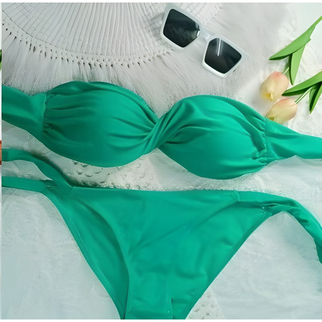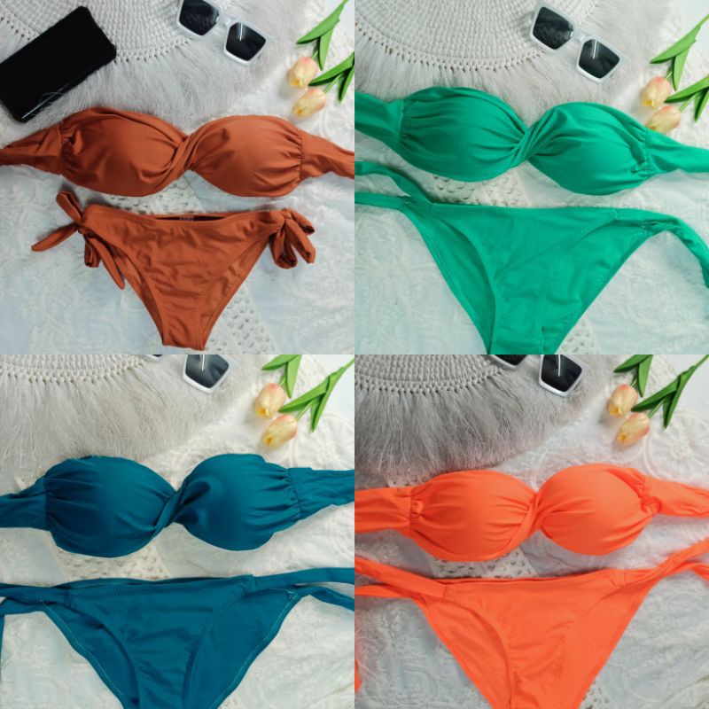 🔥ลด 50% ใส่โค้ด INCML11🔥 เกาะอกบิด Bikini Twist ผ้าว่ายน้ำ 100% Size M , XL มีฟองน้ำในตัว