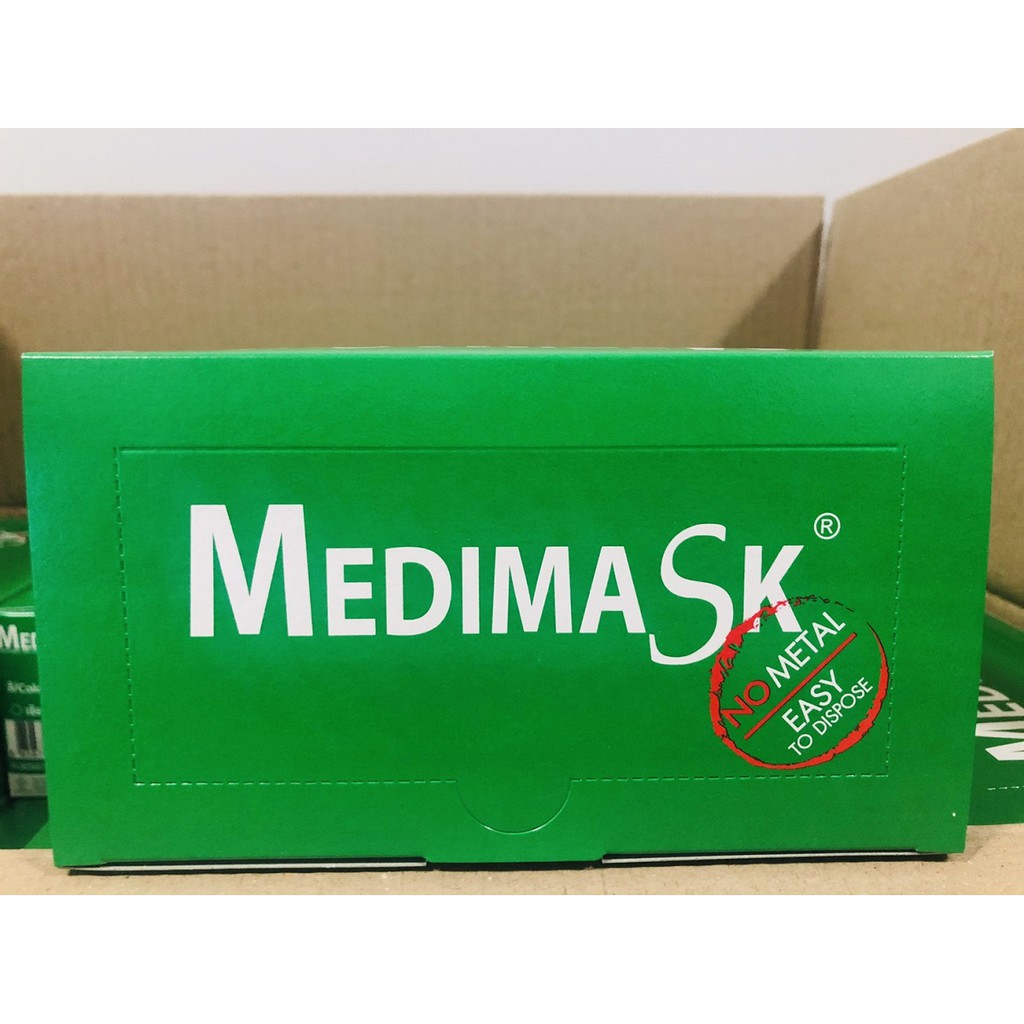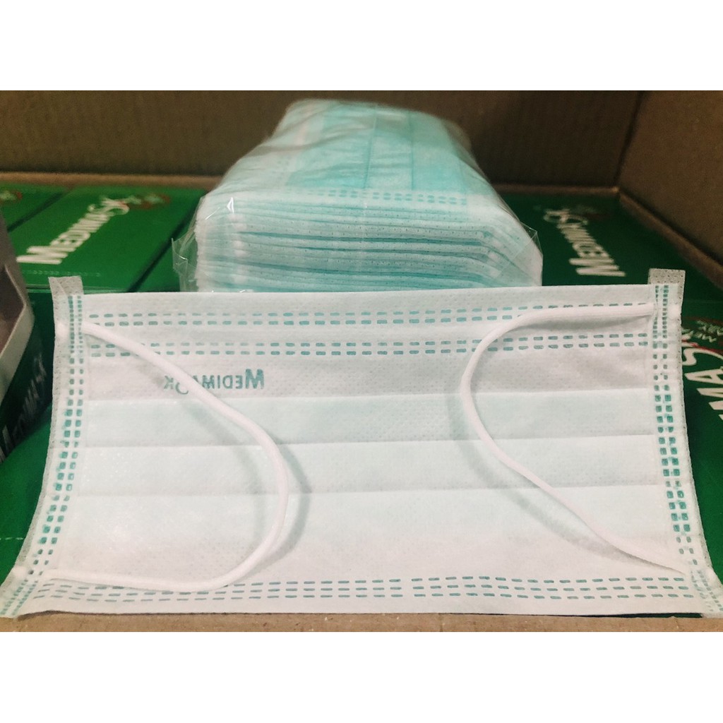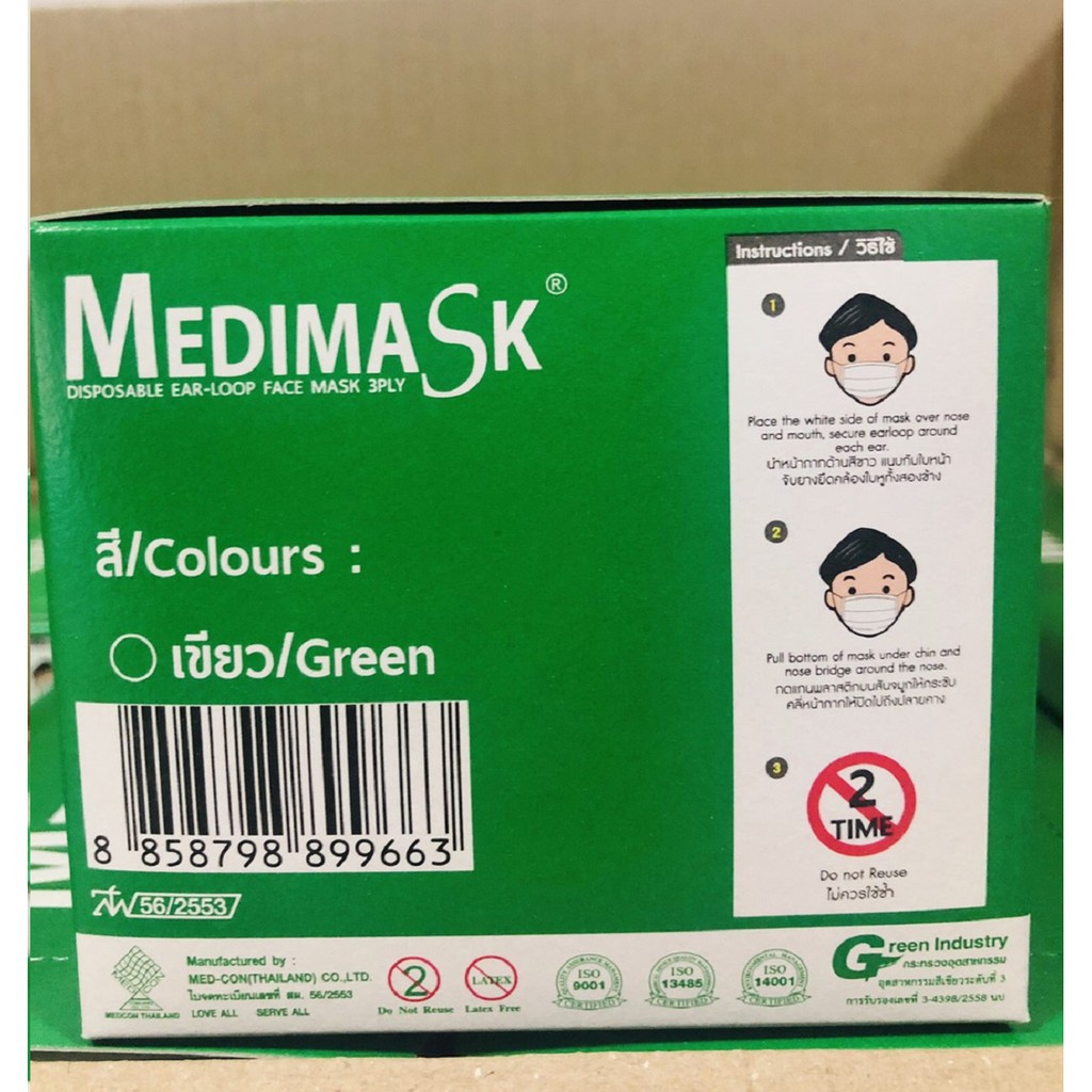 Medimask ผ้าปิดจมูกสีเขียว หน้ากากอนามัยสีเขียว 3ชั้น 1 กล่อง มี 50ชิ้น ของแท้ พร้อมส่ง