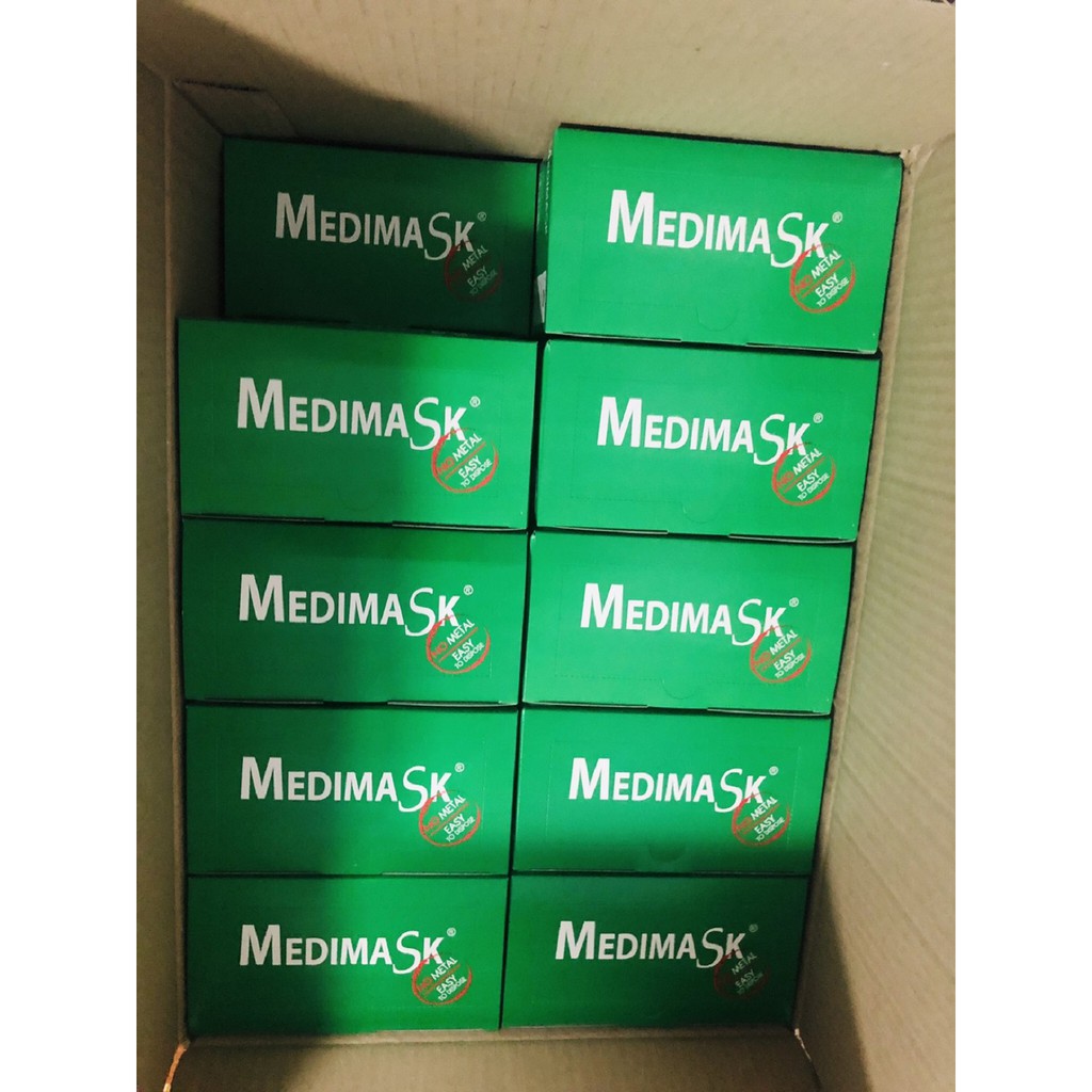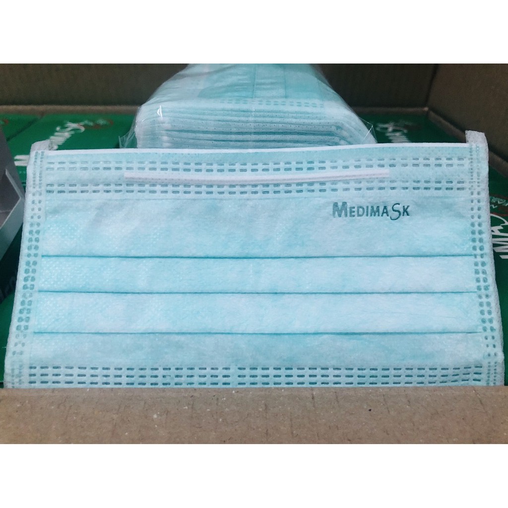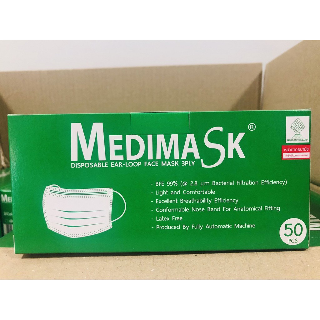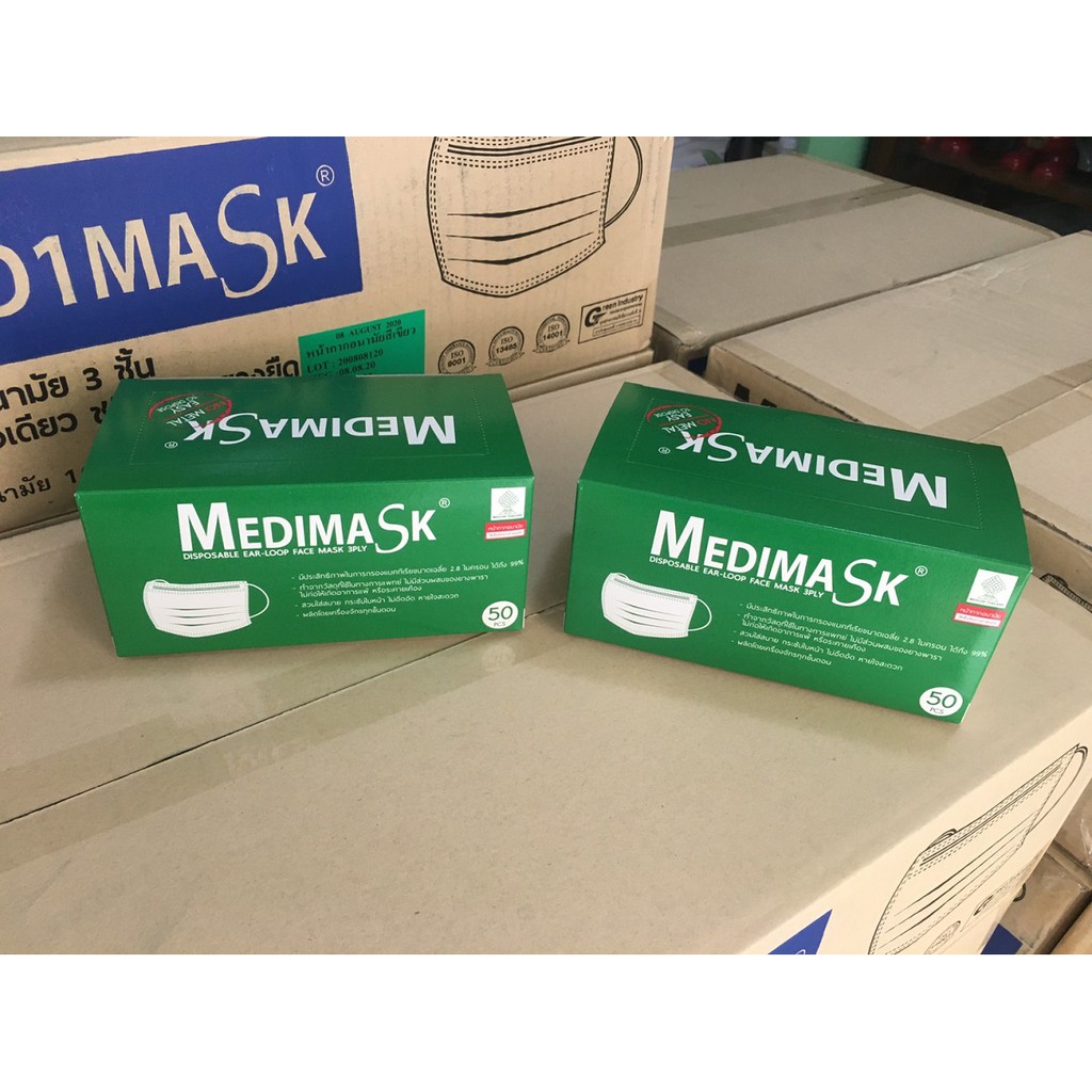 Medimask ผ้าปิดจมูกสีเขียว หน้ากากอนามัยสีเขียว 3ชั้น 1 กล่อง มี 50ชิ้น ของแท้ พร้อมส่ง
