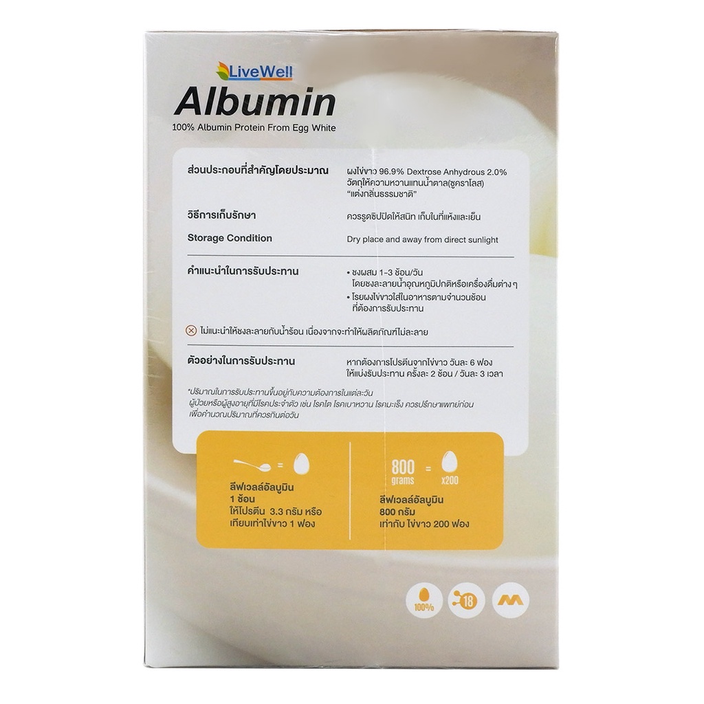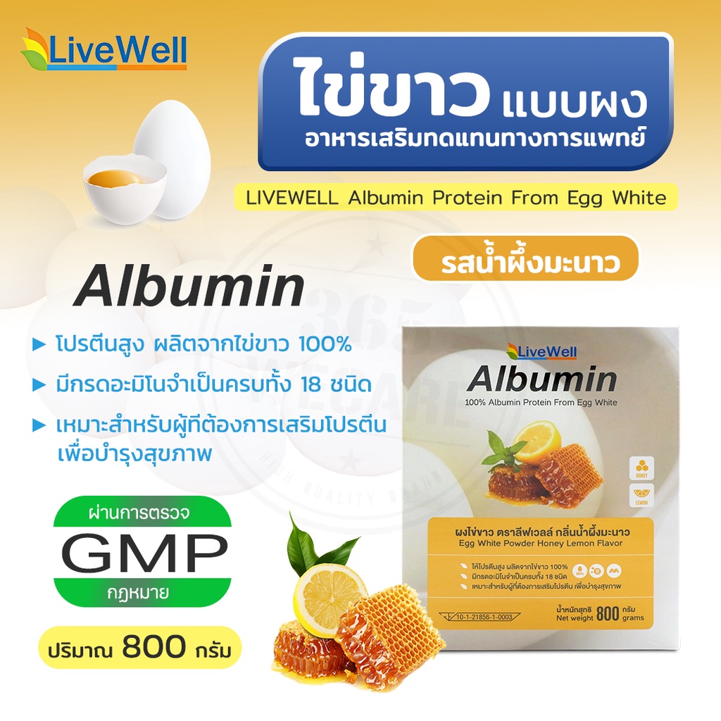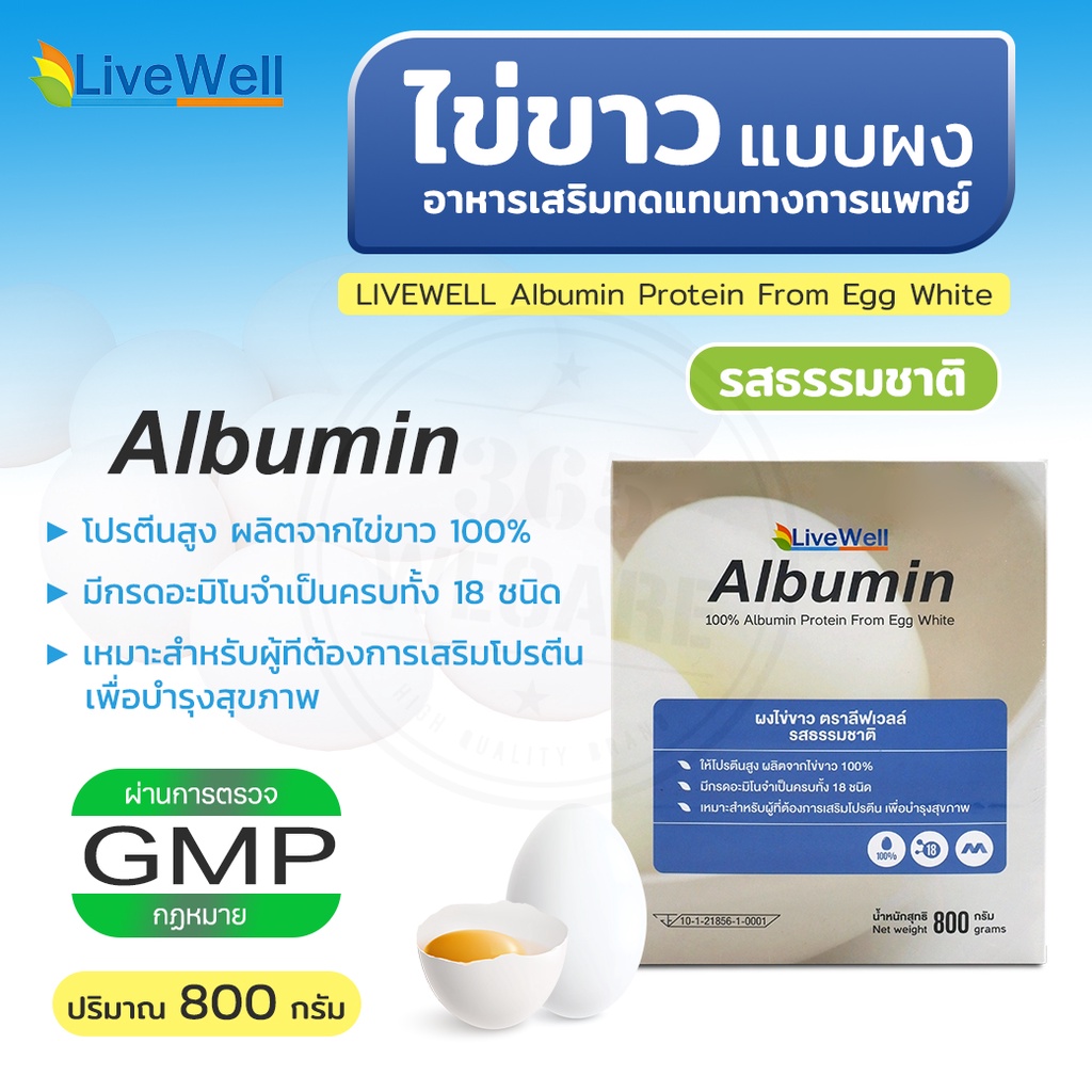 LIVEWELL Albumin 800g. โปรตีนอัลบูมินจากไข่ขาวโปรตีนไข่ขาว 365wecare