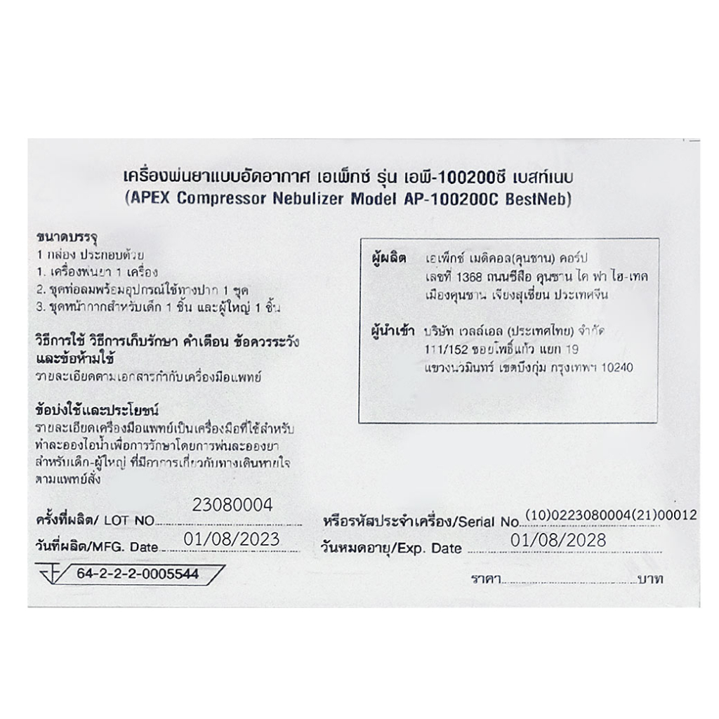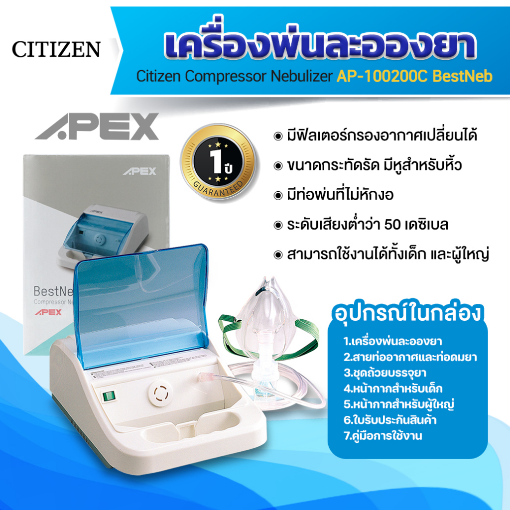 Apex เครื่องพ่นละอองยา Bestneb รุ่น AP-100200 เครื่องทำงานเงียบ น้ำหนักเบา 365wecare