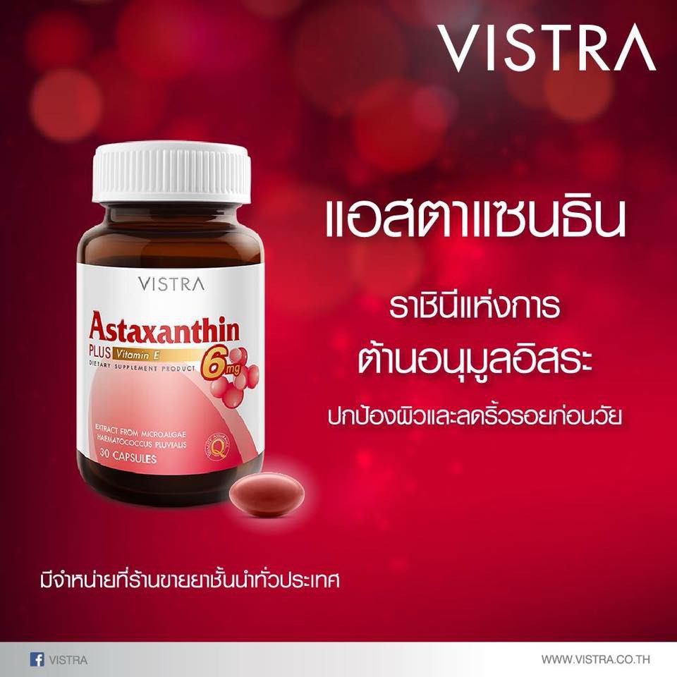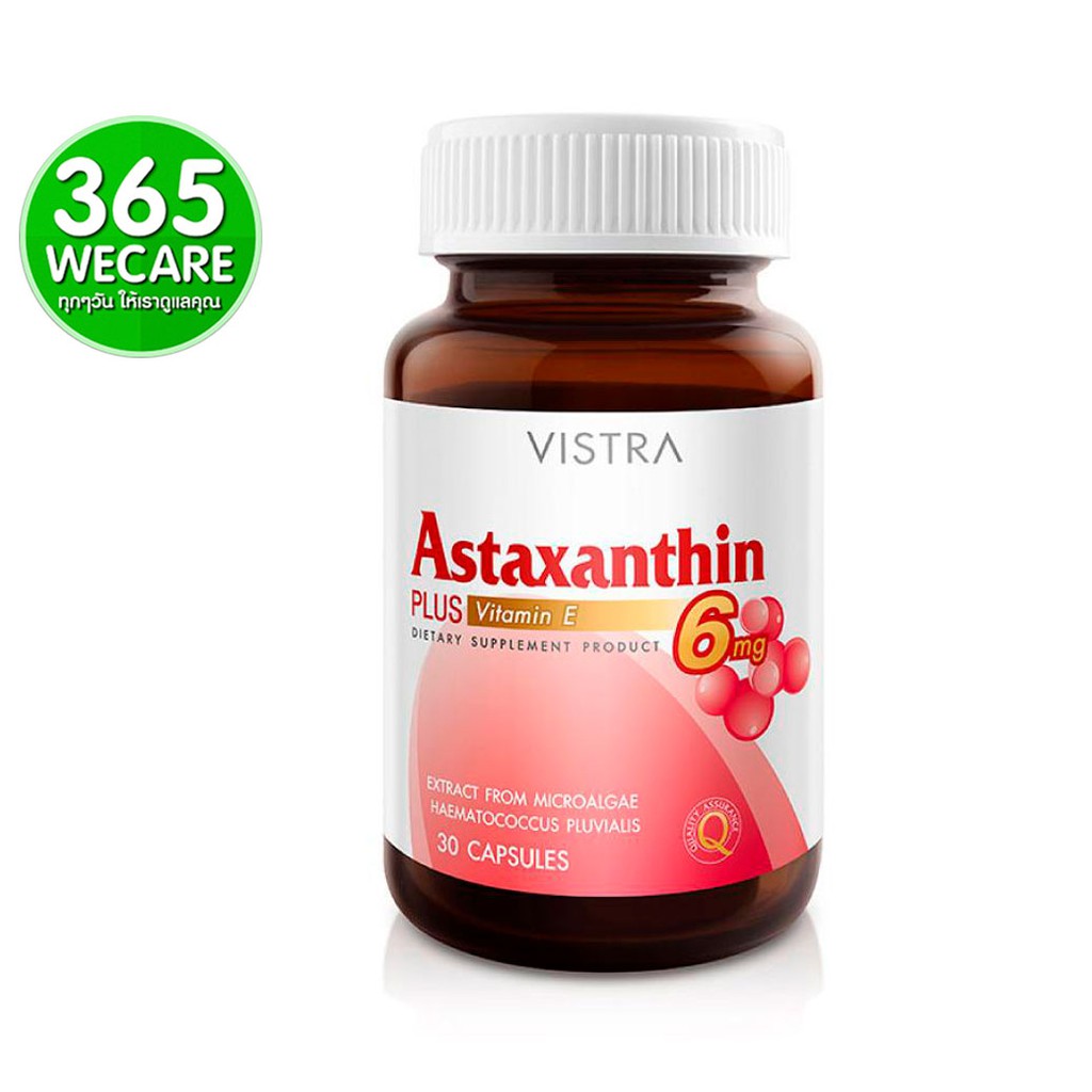 VISTRA Astaxanthin 6 mg. วิสทร้า แอสตาแซนธีน ดูแลผิวพรรณ ช่วยชะลอวัย 30เม็ด 365wecare