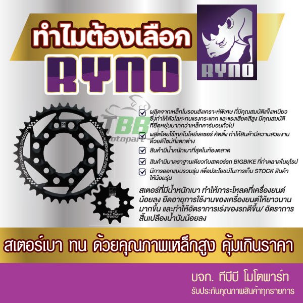สเตอร์หน้า RYNO ดำ 428 EXCITER/ M-SLAZ/ R15 /FIN เลือกฟันด้านใน 📌รุ่นอื่นดูที่รายละเอียดเพิ่ม