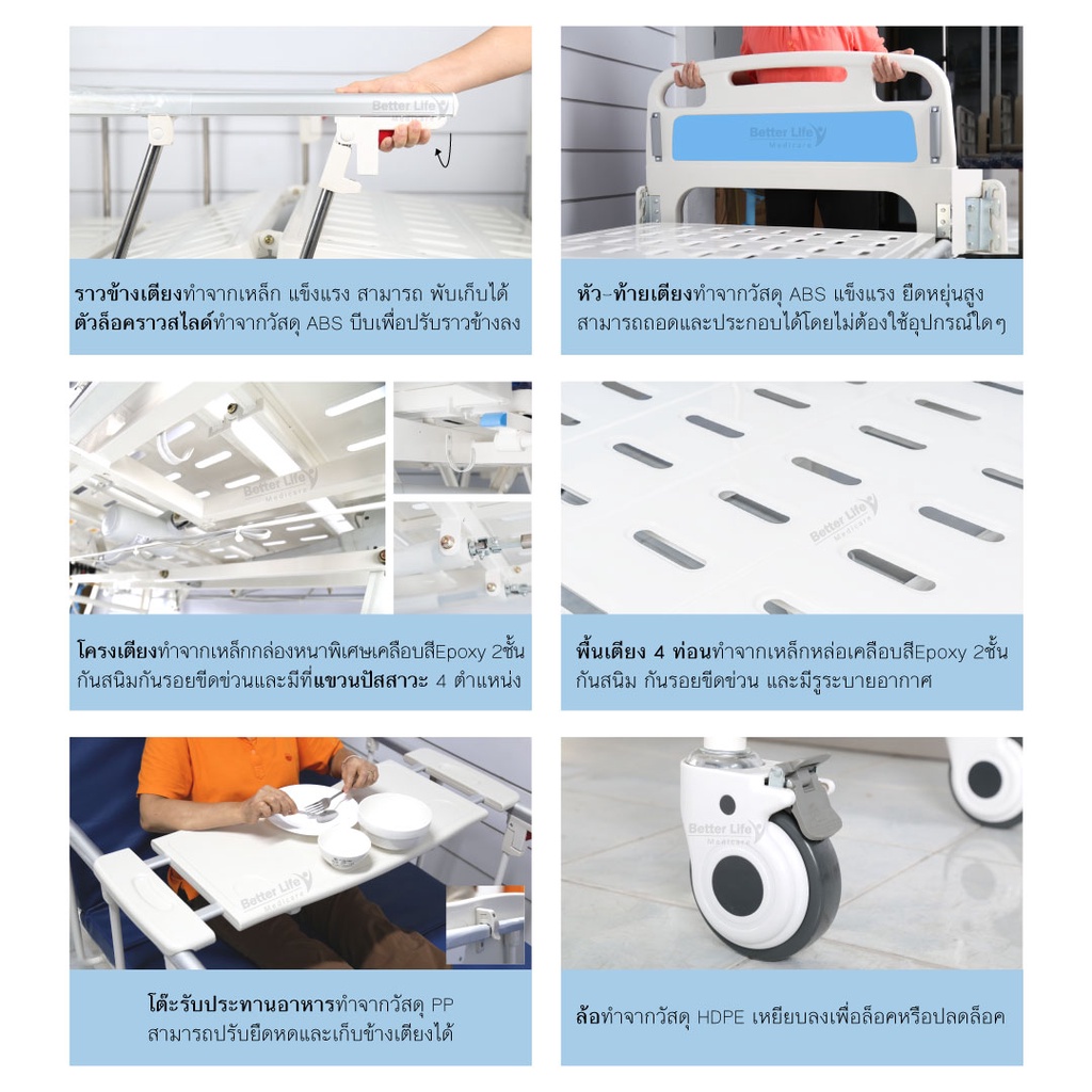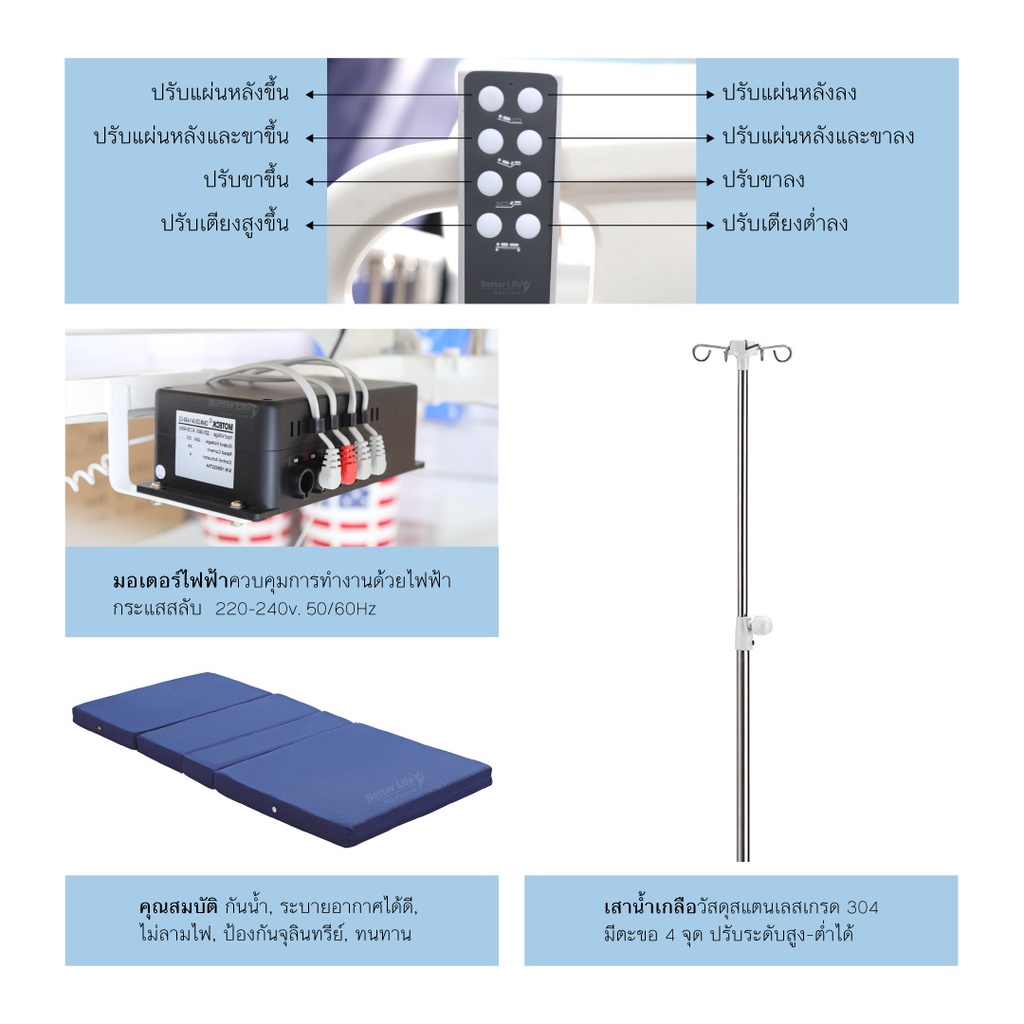 เตียงไฟฟ้า 3 ฟังก์ชั่น ราวข้างสไลด์ ฟรีที่นอน 4 ตอน