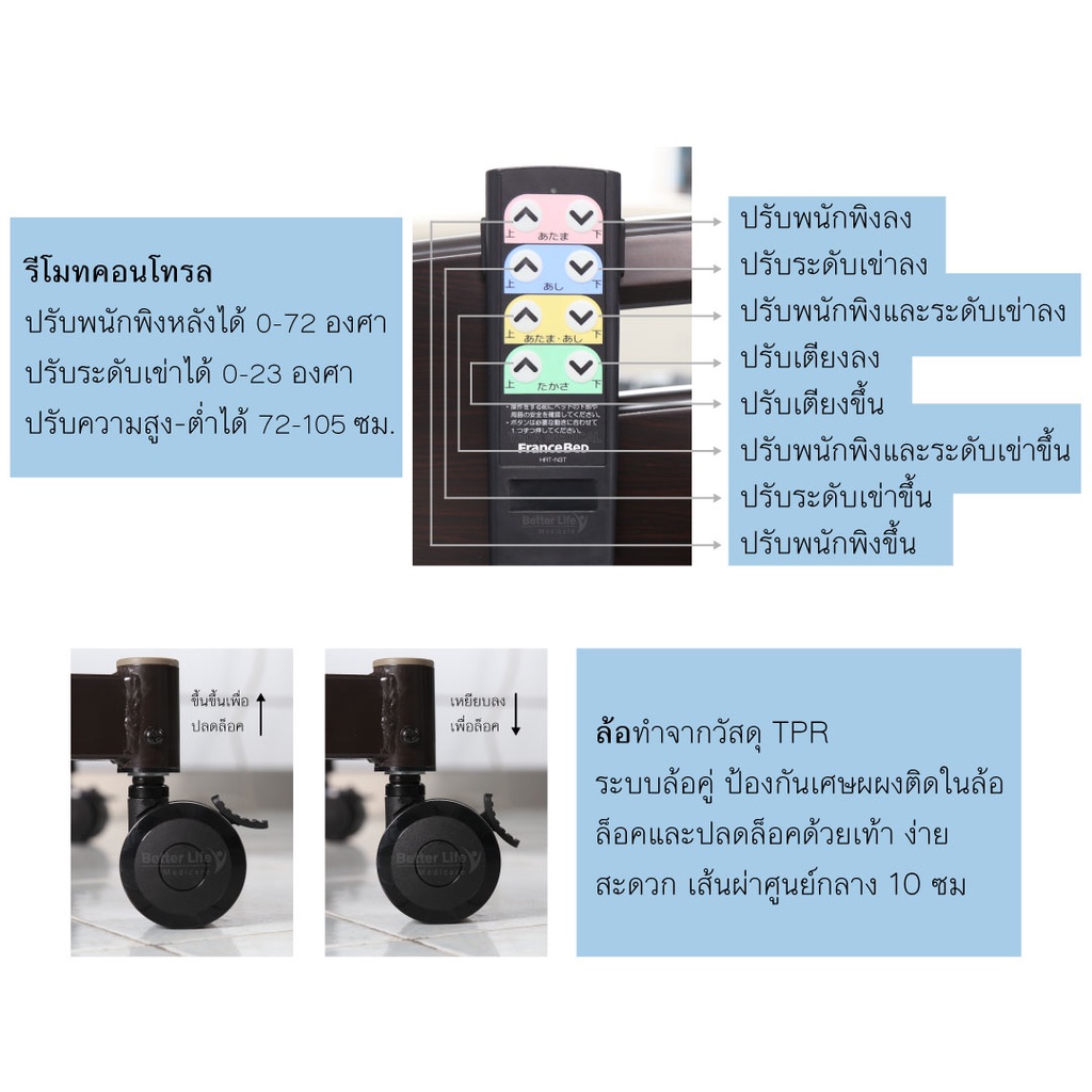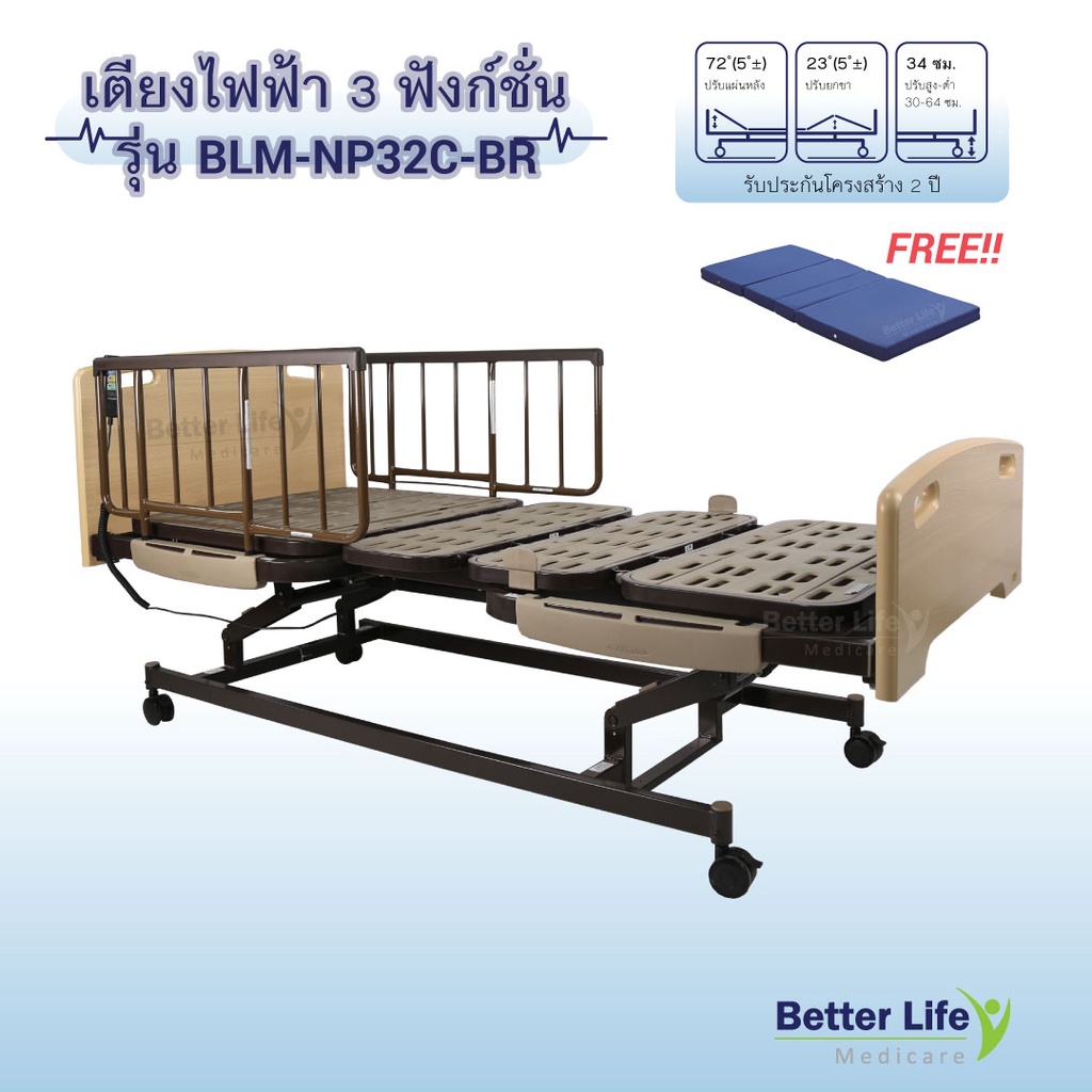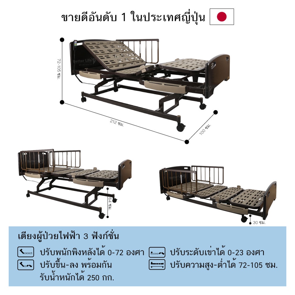 เตียงไฟฟ้าญี่ปุ่น 3 ฟังก์ชั่น ปรับได้ต่ำพิเศษ ฟรีที่นอน