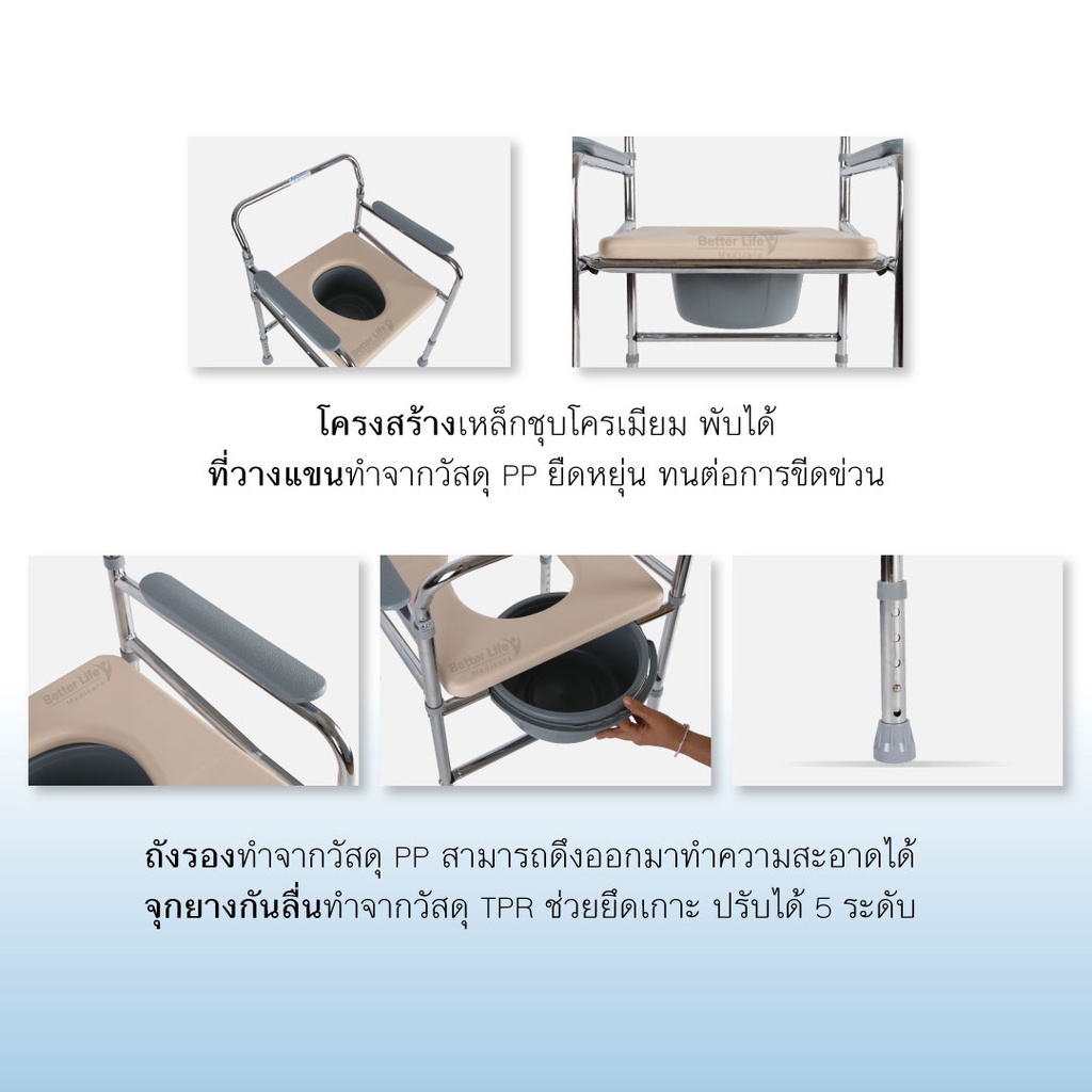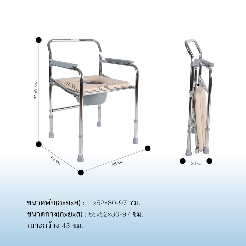 เก้าอี้นั่งถ่ายเหล็กชุบโครเมียม แข็งแรง พับได้