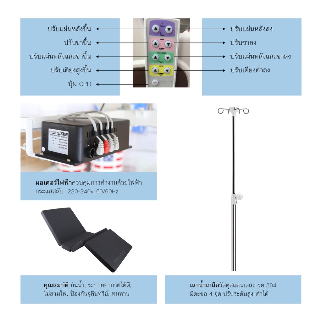 เตียงไฟฟ้า 3 ฟังก์ชั่น ปีกนก ฟรีที่นอน 4 ตอน