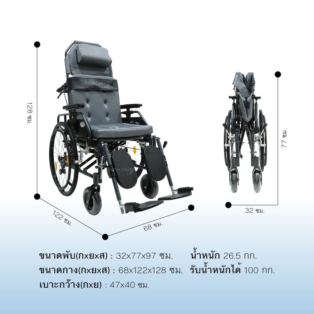 รถเข็นอลูมิเนียม ปรับนอน พับได้