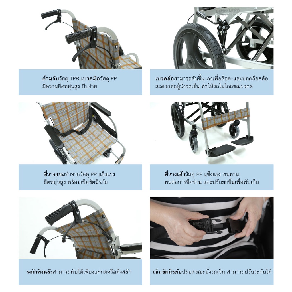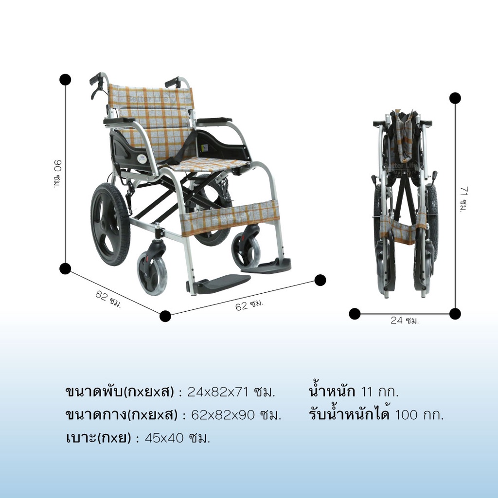 รถเข็นอลูมิเนียมอัลลอย โครงแบน น้ำหนักเบา พับได้