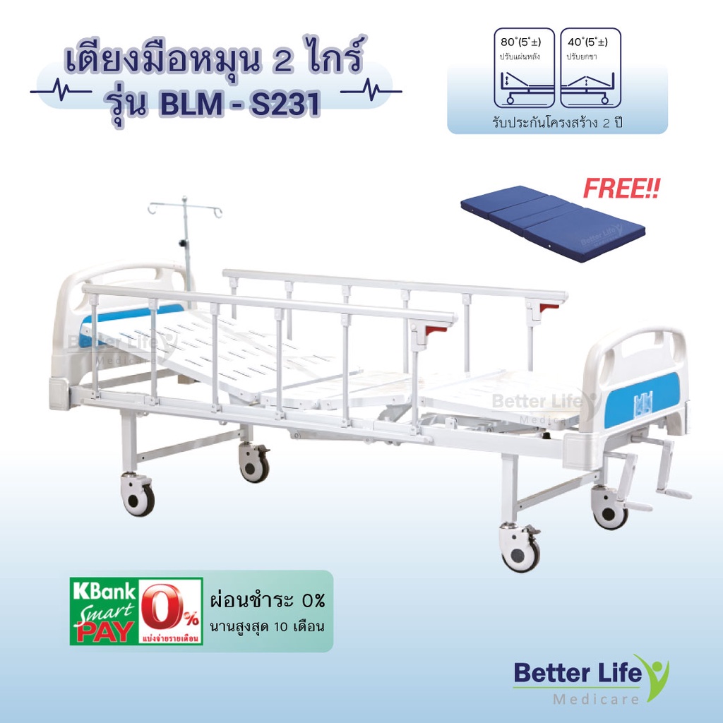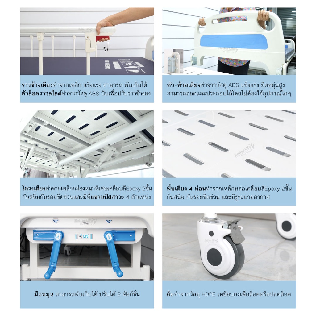 เตียงมือหมุน 2 ไกร์ ราวสไลด์ ฟรีที่นอน 4 ตอน