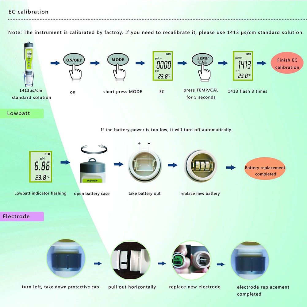 ปากกาทดสอบคุณภาพน้ํา 3-in-1 ความแม่นยําสูง EC/pH/เครื่องทดสอบน้ําแบบพกพาการเพาะเลี้ยงสัตว์น้ํา/สระว่ายน้ํา/การดื่มน้ําทดสอบอิเล็กโทรดเปลี่ยนได้