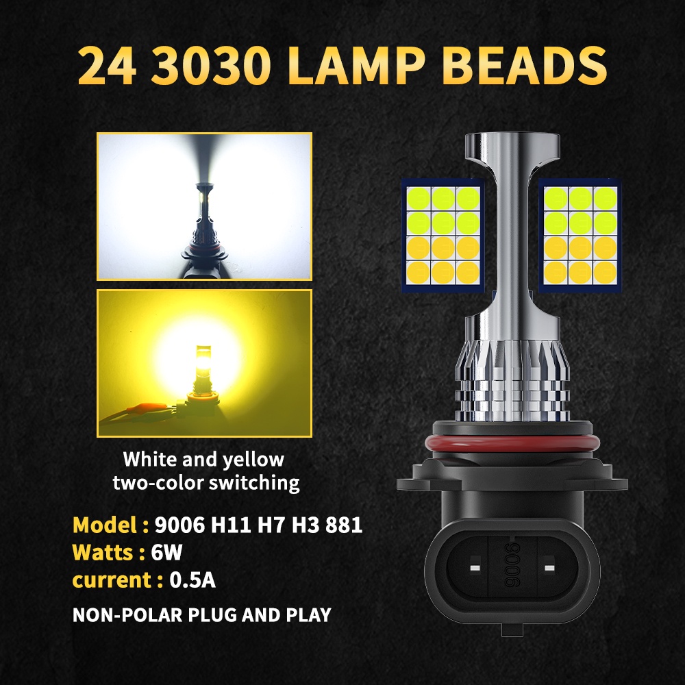 ((2 ชิ้น) หลอดไฟตัดหมอก LED H11 H3 H7 H8 HB4 881 9006 DRL สีขาว สีเหลือง สําหรับรถยนต์