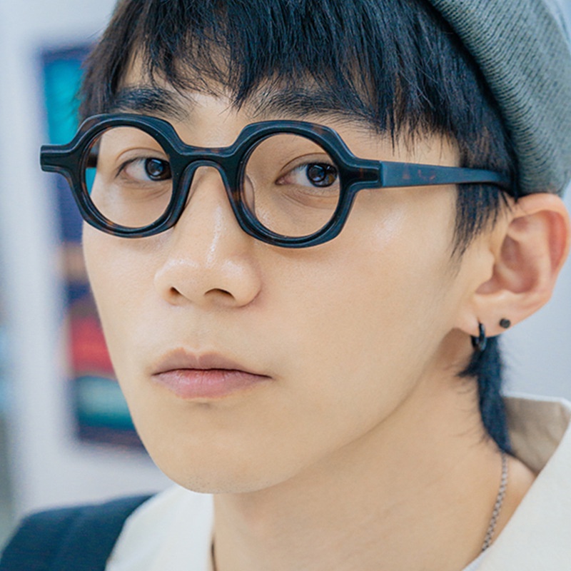 กรอบแว่นตา หกเหลี่ยม แฮนด์เมด สายตาสั้น เลนส์ใส แว่นตาออปติคอล แว่นตาใส อะซิเตท แว่นตา