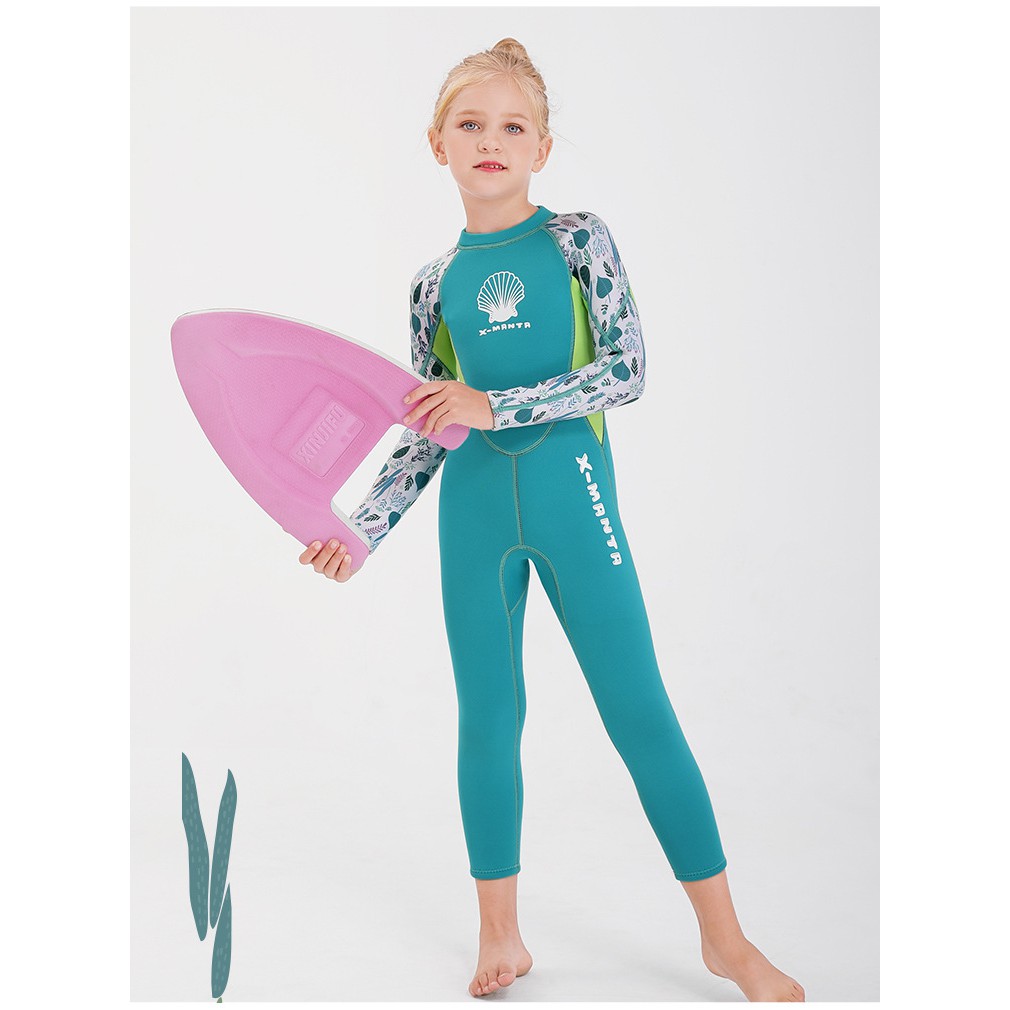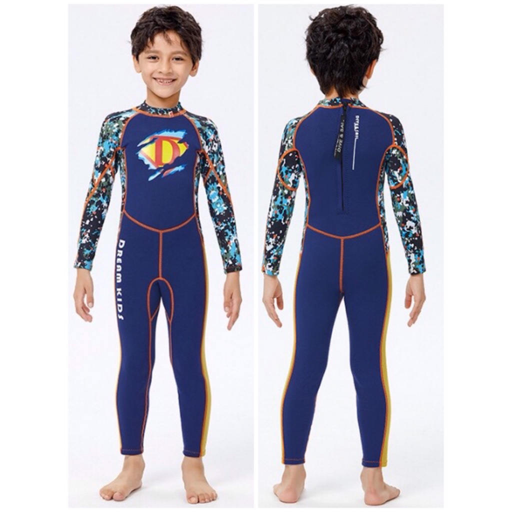 (แถมหมวก) ชุดว่ายน้ำเด็ก ควบคุมอุณหภูมิ ใส่ง่าย แขนยาว กันหนาว Swimsuit แถมหมวก พร้อมจัดส่งในไทย