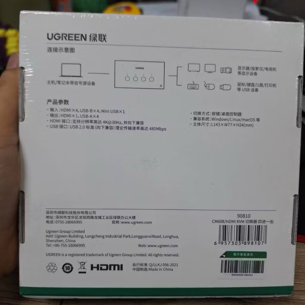 UGREEN (90810) 4 IN 1 OUT KVM HDMI SWITCH CM608