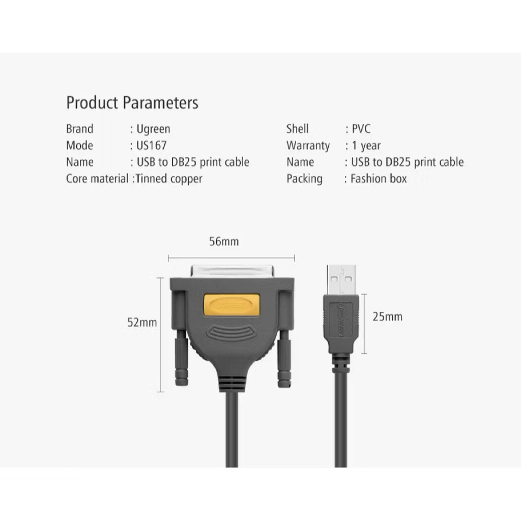 UGREEN USB to DB25 Parallel Printer Cable 1M (20793) / 2M (20224)