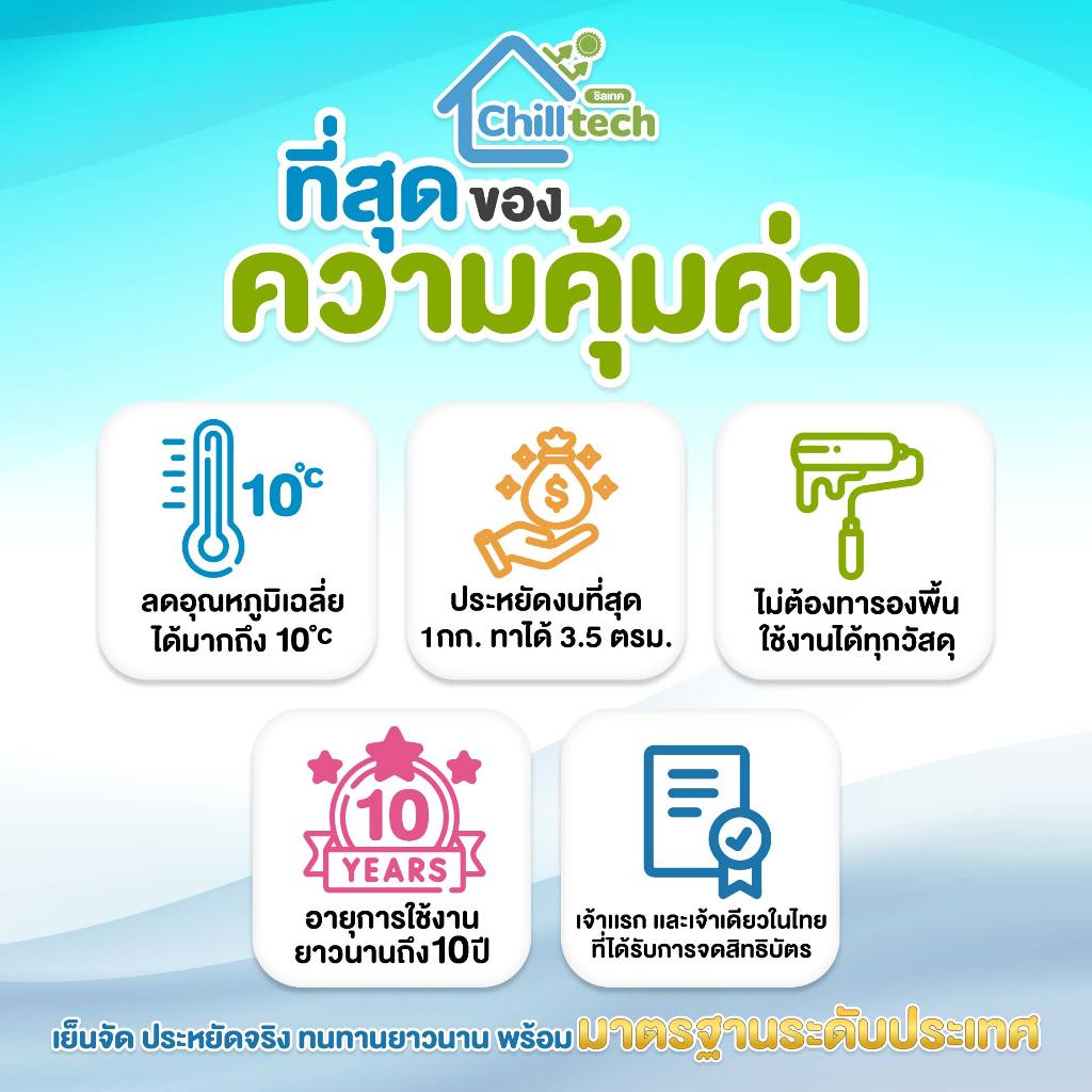 Hi-jet สีชิลเทค(Chilltech) สีสะท้อนความร้อน ลดอุณหภูมิเฉลี่ย 10°C เหมาะสำหรับทุกพื้นผิว ขนาด 5 กก. และ 20 กก.