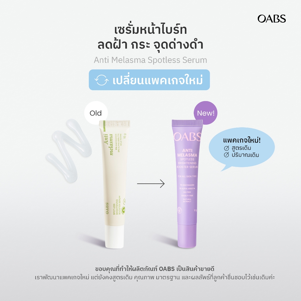 OABS เซ็ตเคลียร์ฝ้า Anti Melasma Spotless Brightening Booster serum 15g + 5X Ceramide Moisturizer 50ml
