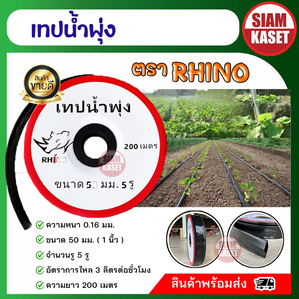 เทปน้ำพุ่ง RHINO ไรโน่ สีส้ม 50 มม. 5 รู สายส่งน้ำ น้ำพุ่ง