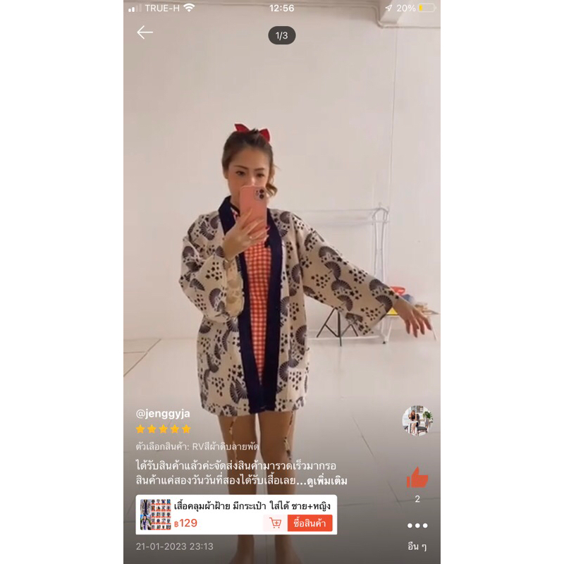 เสื้อคลุมผ้าฝ้าย มีกระเป๋า ใส่ได้ ชาย+หญิง