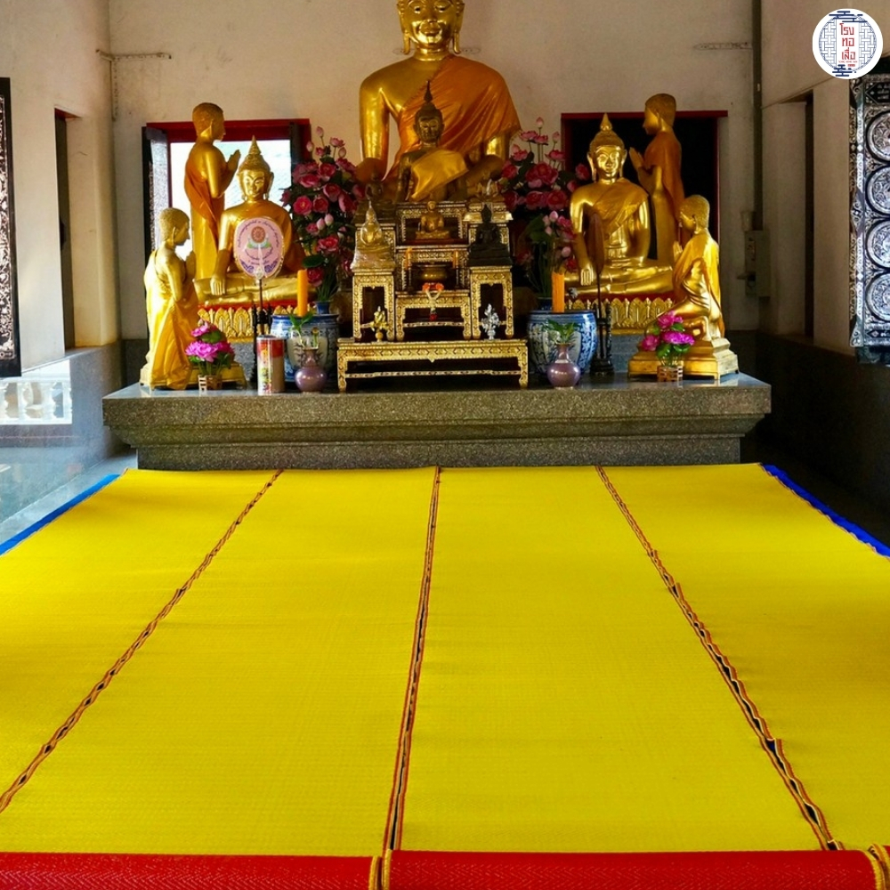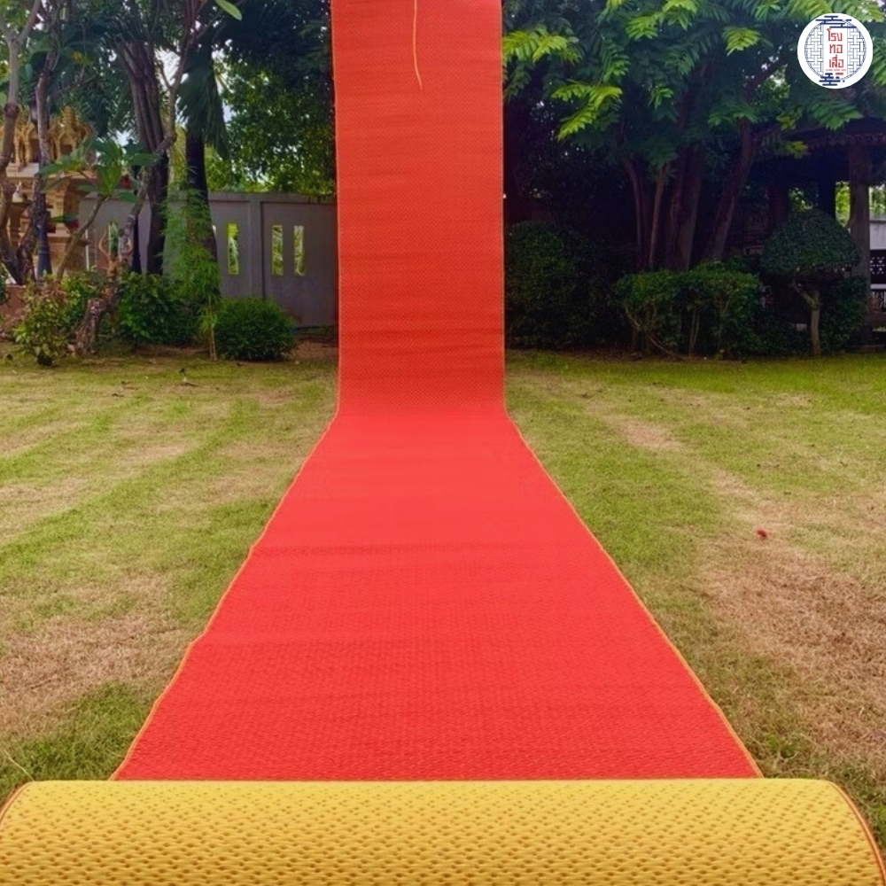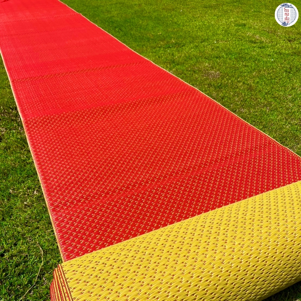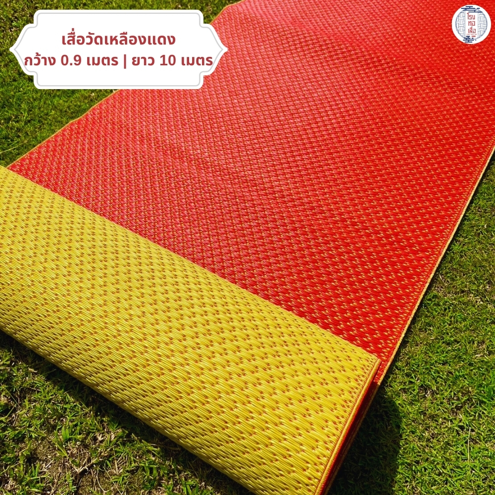 เสื่อวัด สีเหลืองแดง รุ่น L5 ทอแน่น แข็งแรง ทนทาน ใช้งานได้สองด้าน (กว้าง 90ซม. ยาว 10ม.) โรงทอเสื่อ