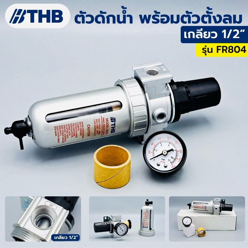 THB ตัวดักน้ำ ชุดตัวดักน้ำ พร้อมตัวตั้งลม ขนาดเกลียว 1/2" รุ่น FR-804
