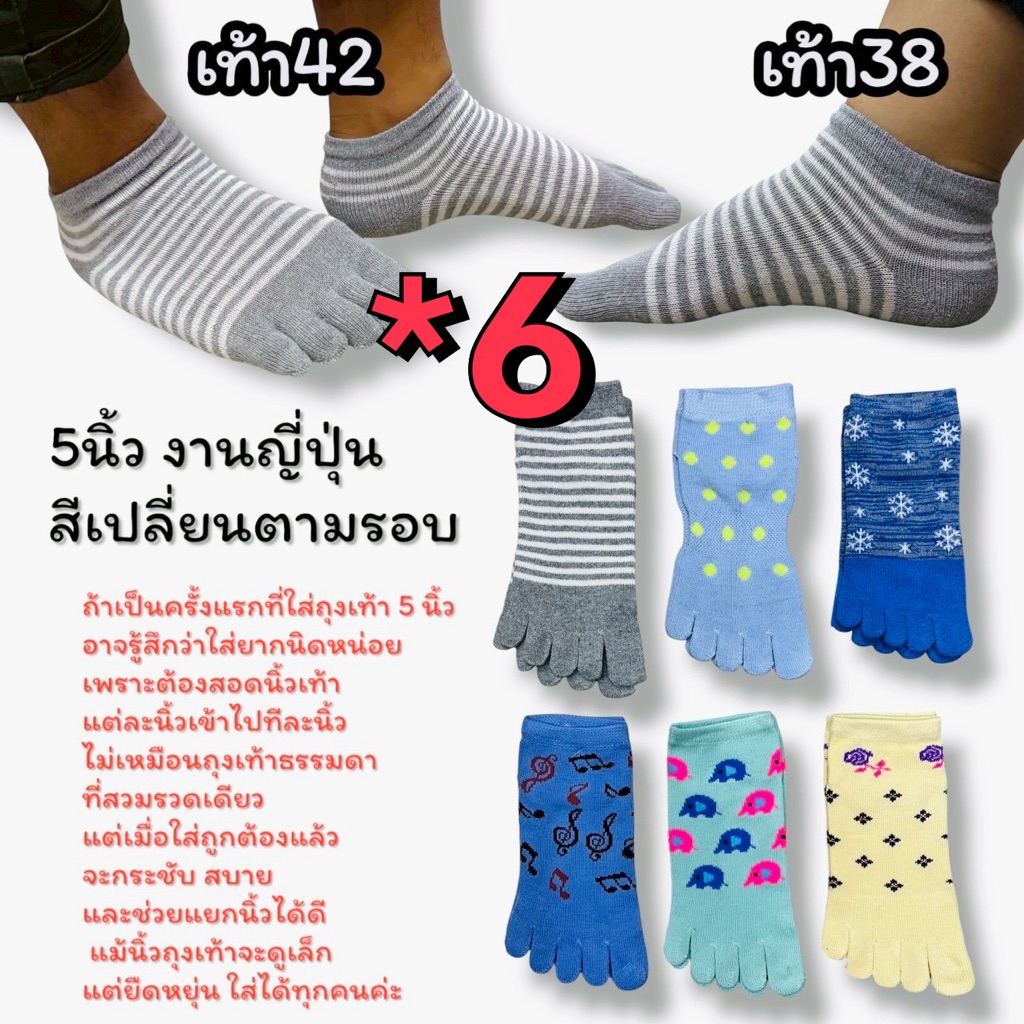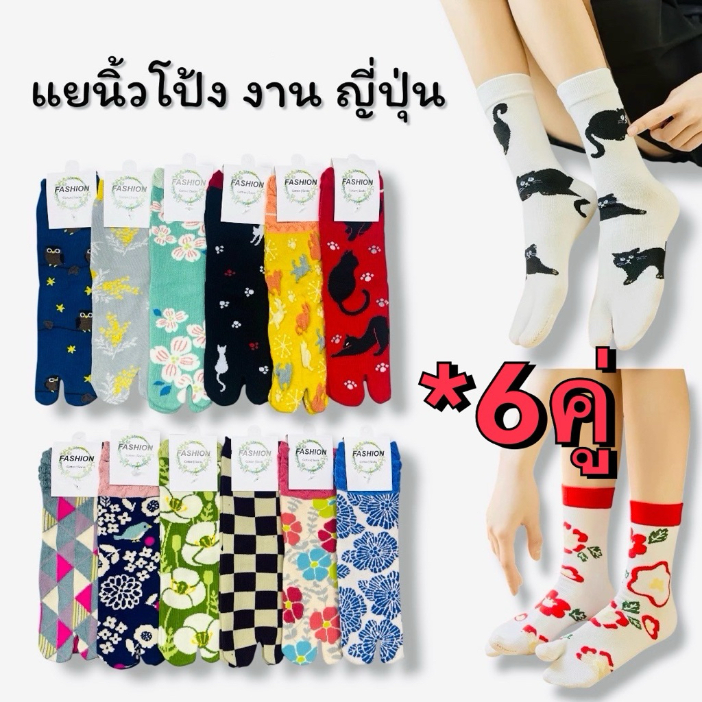 1-6คู่ ถุงเท้าแยกนิ้วชายหญิง ข้อกลาง แยก5นิ้ว แยก2นิ้ว แยกนิ้วโป่ง snoopy