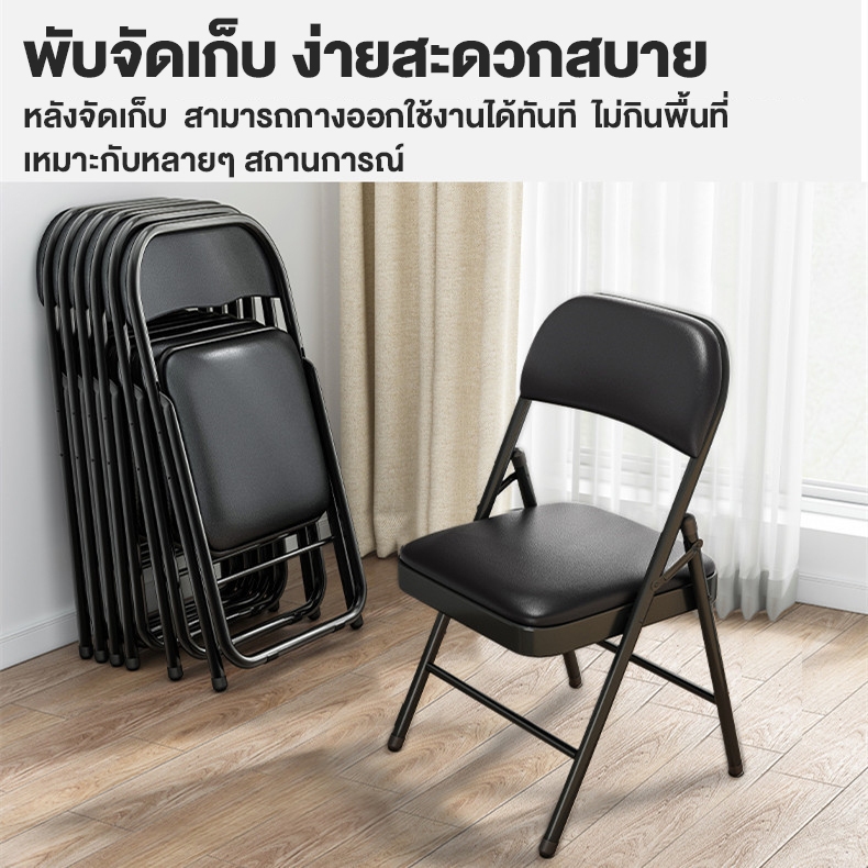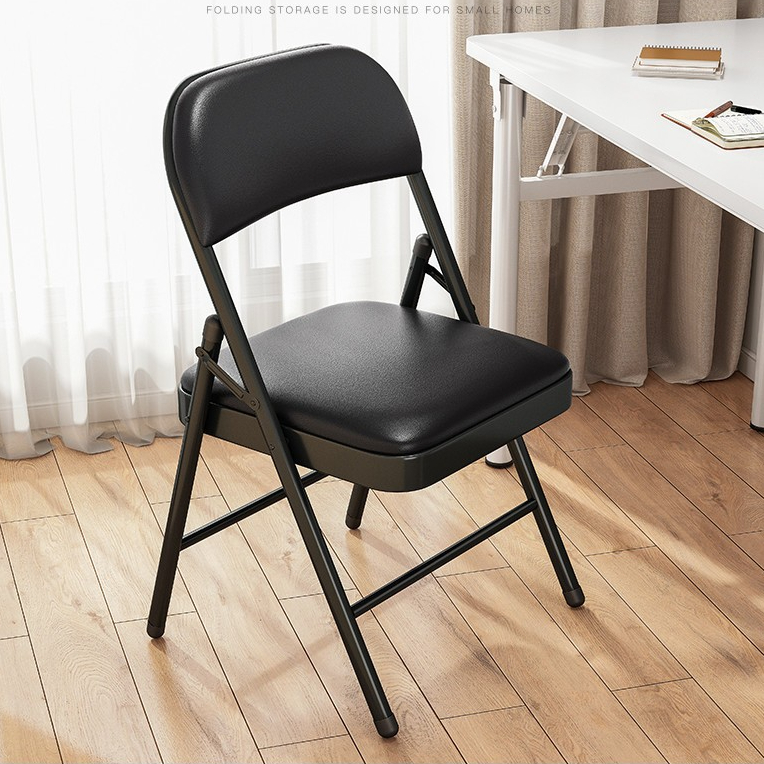 เก้าอี้พับ เก้าอี้หลัง พื้นผิวหนังนุ่ม ท่อเหล็กหนา เก้าอี้หอพักนักเรียน เก้าอี้คอมพิวเตอร์สำนักงาน เก้าอี้พับแบบพกพา