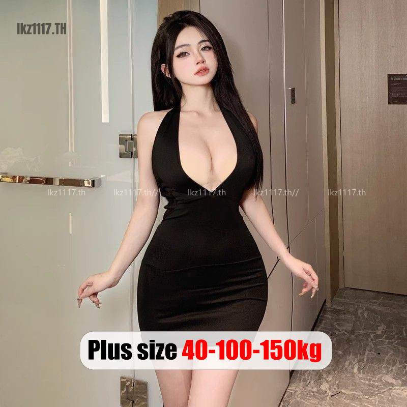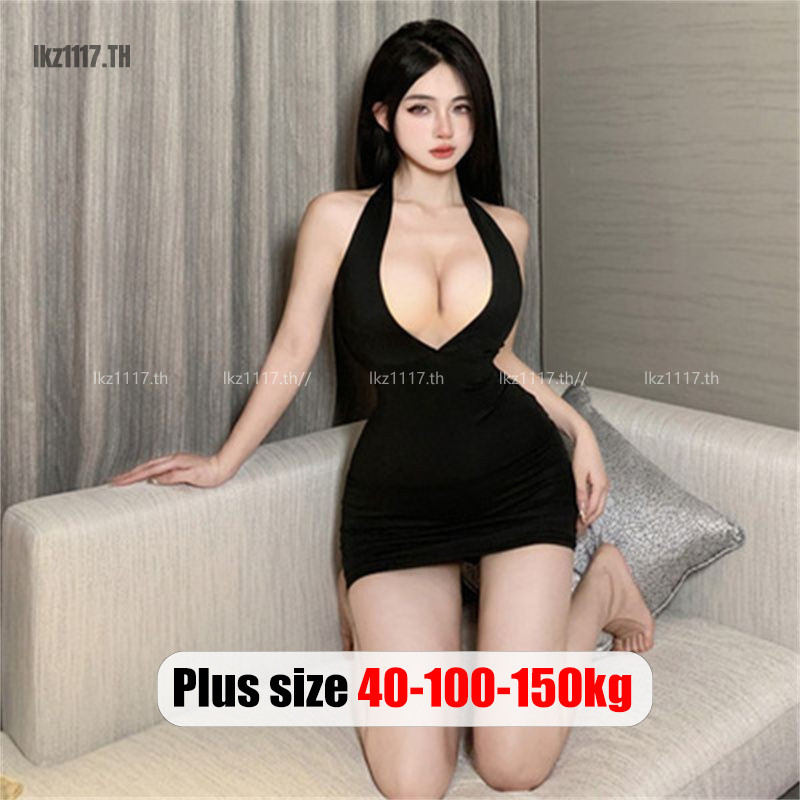 ★ชุดนอนเซ็กซี่คนอ้วน ชุดนอนไม่ได้นอนสาวอวบ คล้องคอ รัดรูป คอวีลึก เว้าหลัง ชุดนอนผู้หญิงไซร้ใหญ่ ชุดยั่วเซ็กซี่