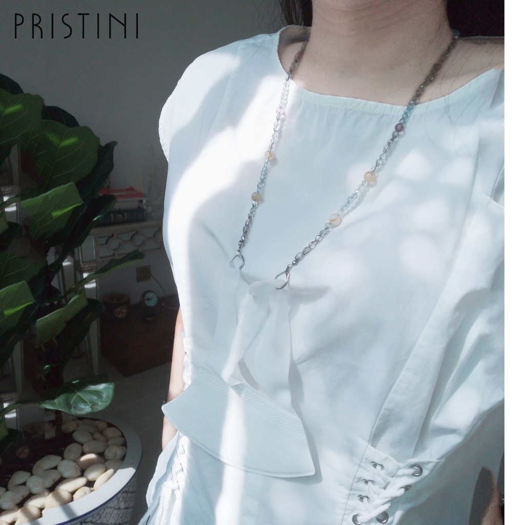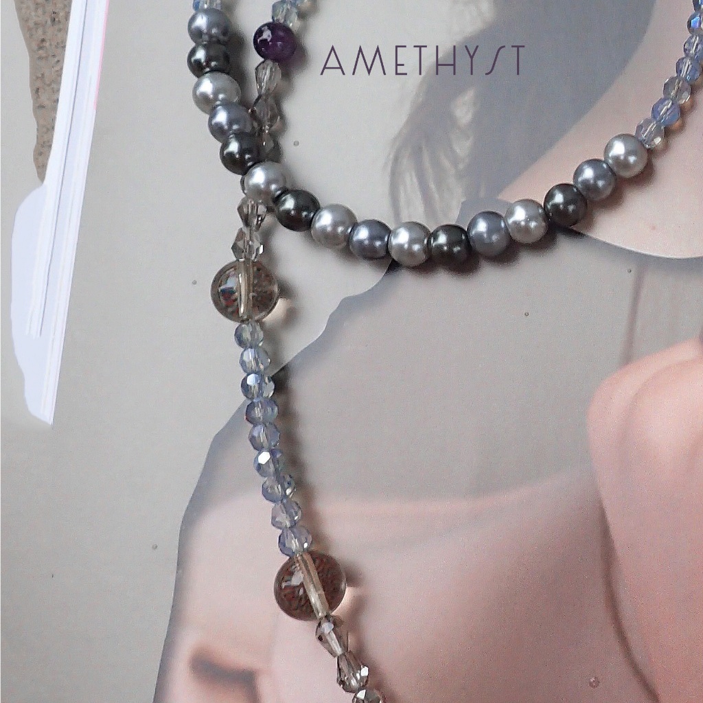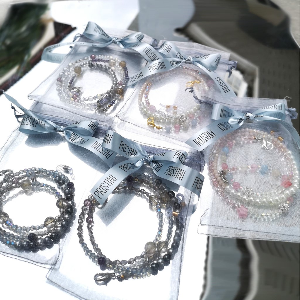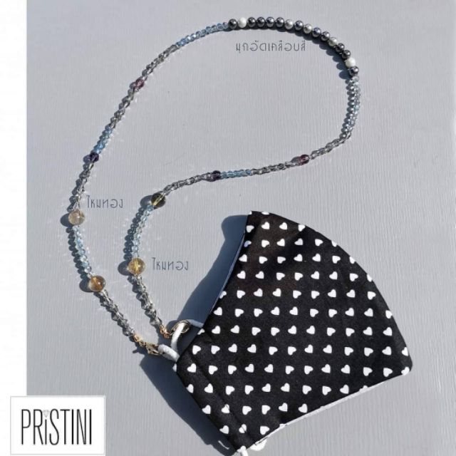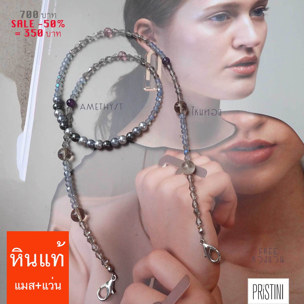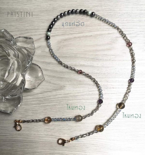 👩🏻สายคล้องแมสคริสตัล ไหมทอง สายเกี่ยวแว่น หินแท้ โทนเทา👩🏻