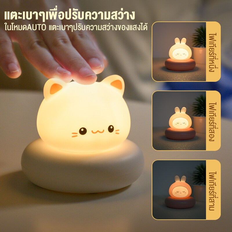 ไฟกลางคืน โคมไฟตั้งโต๊ะ ไฟเซ็นเซอร์ ไฟหัวเตียง พร้อมรีโมท ชาร์จusb ไฟอัตโนมัติ 3สี