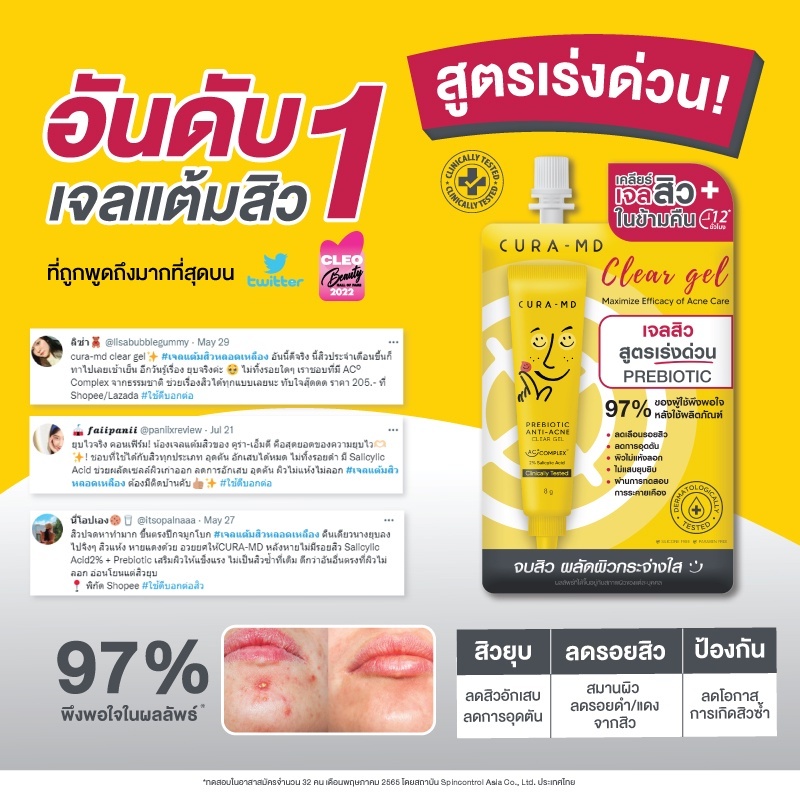 [ยกกล่อง 6ซอง] CURA-MD เจลแต้มสิว พรีไบโอติก ยุบไว ในข้ามคืน Prebiotic Anti-Acne Clear Gel 4 กรัม ทั้งหมด 6 ซอง