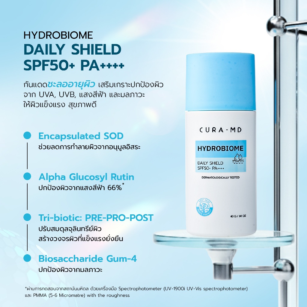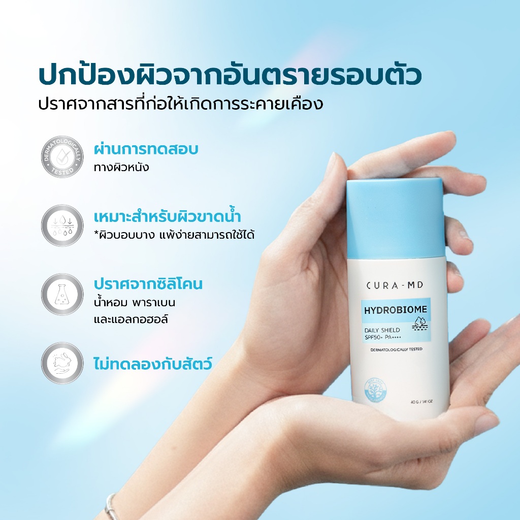 CURA-MD Hydrobiome Daily Shield SPF50+ PA++++ ครีมกันแดดเอสโอดี ปริมาณ 40 กรัม