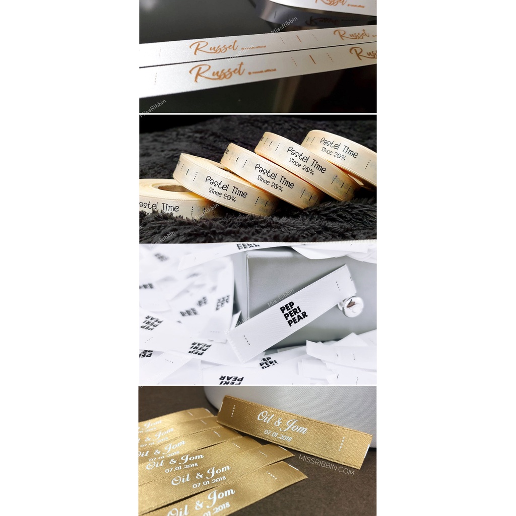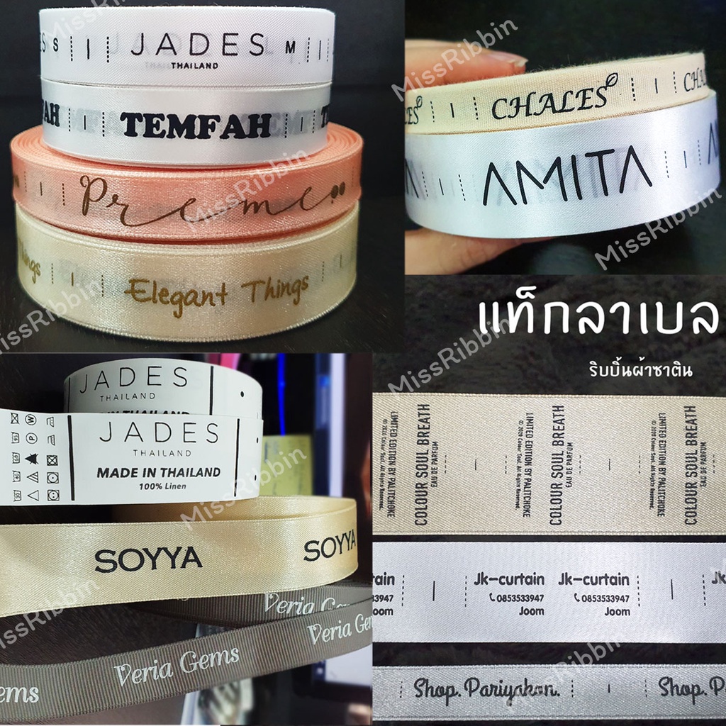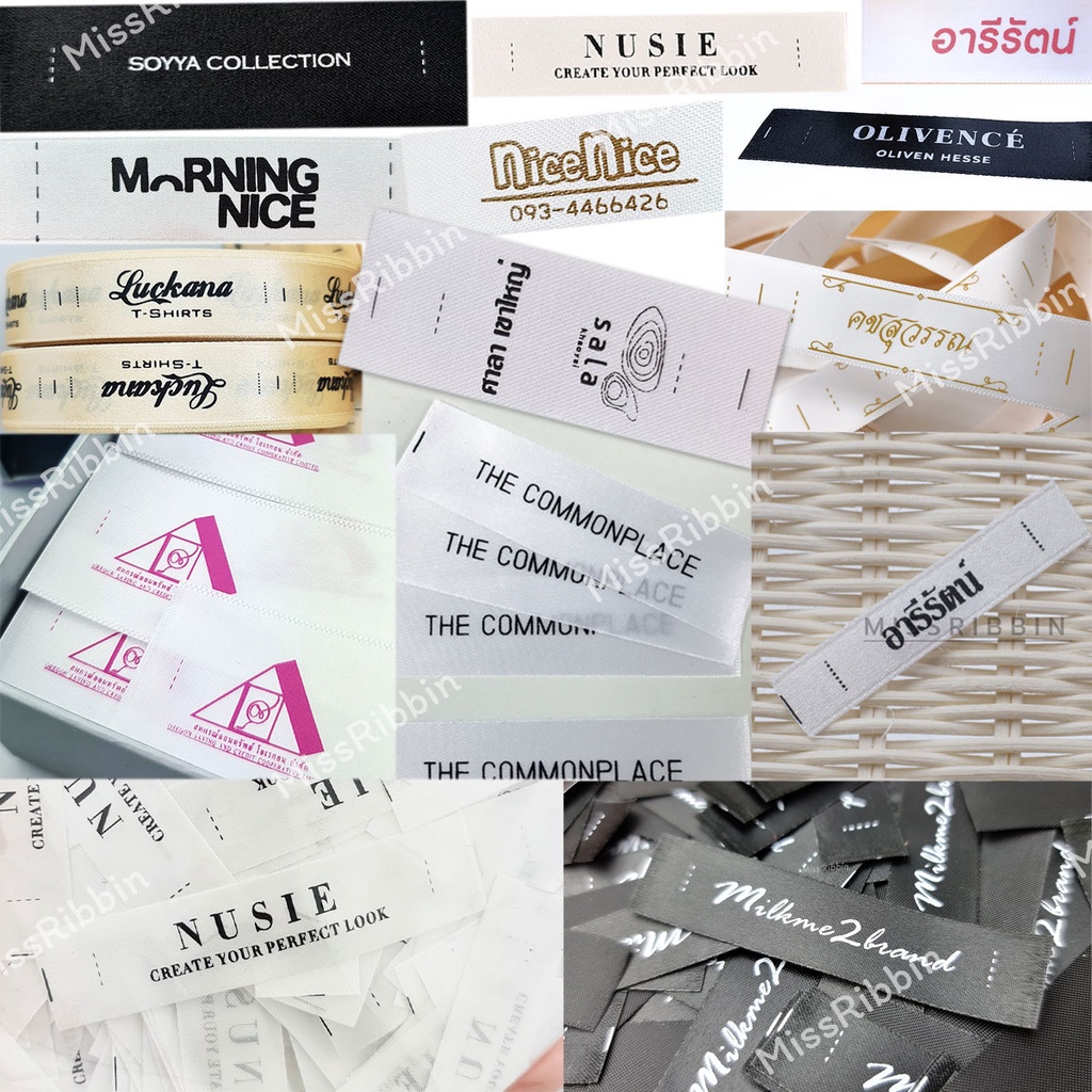 ป้ายยี่ห้อจากผ้าซาตินอย่างดี พร้อมสกรีนโลโก้-ชื่อแบรนด์(ขั้นต่ำ300ชิ้น) สำหรั บติดคอเสื้อ