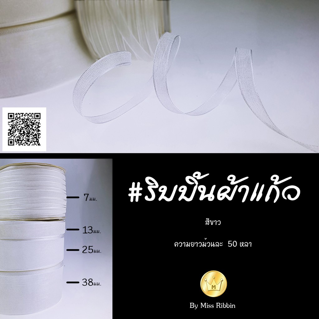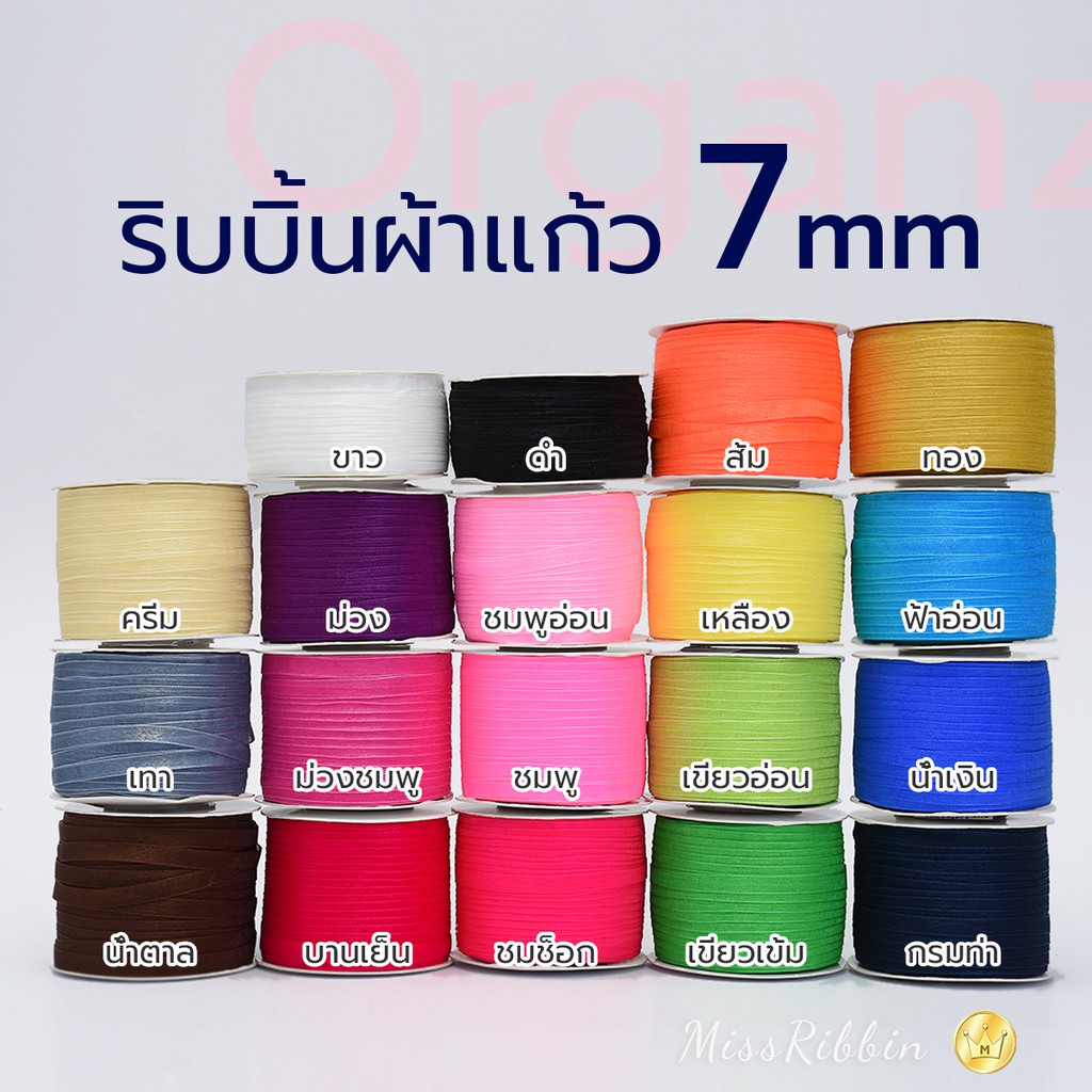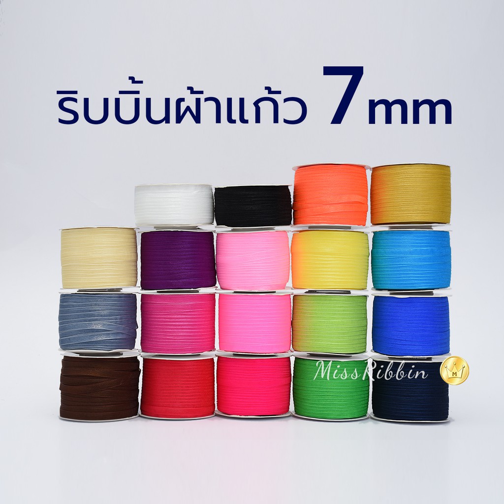 ริบบิ้นผ้าแก้ว7มม. ยาว 120หลา สีสวยๆ คุณภาพดี ราคาโดน
