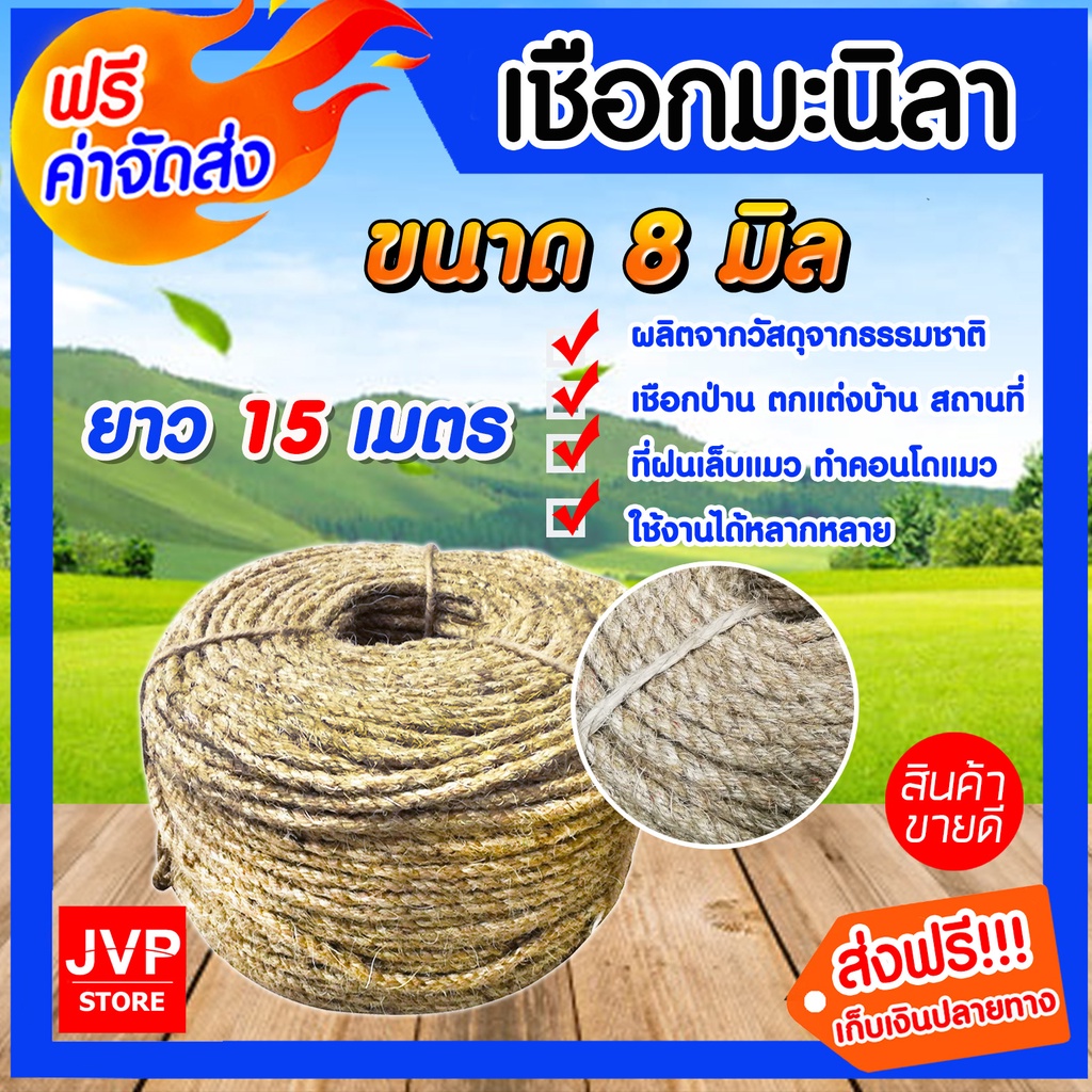 เชือก เชือกมะนิลา ขนาด 8 มิล ความยาว15 เมตร ผลิตจากวัสดุธรรมชาติ เนื้อเชือกแน่น แข็งแรง ทนทาน ทำคอนโดแมว