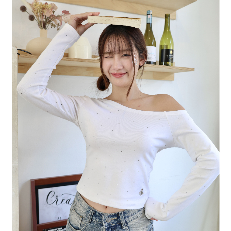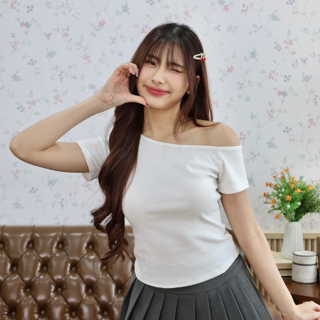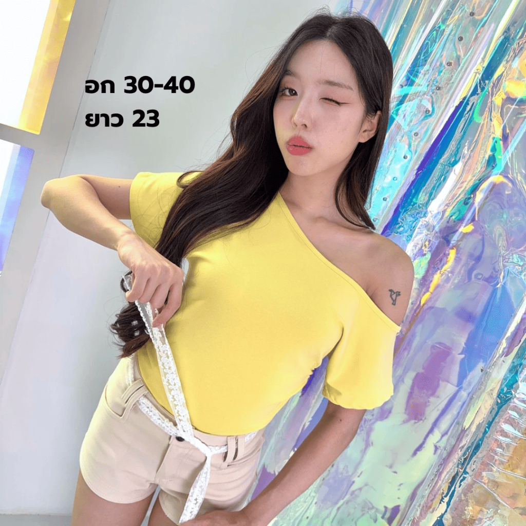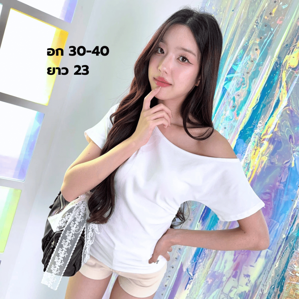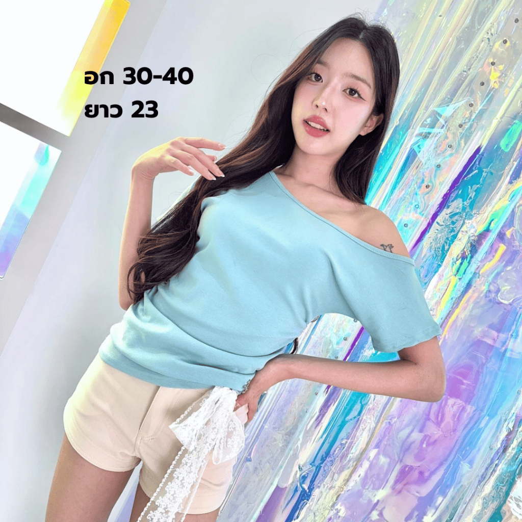 JARINYA (S-L) เสื้อปาดไหล่เฉียงเปิดไหล่ ผ้า Cotton ยืดนุ่มใส่สบาย ผ้าไม่ บาง ระบายอากาศได้ดี ทรงสวยเข้ารูป (T916)