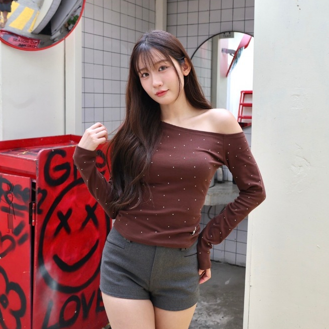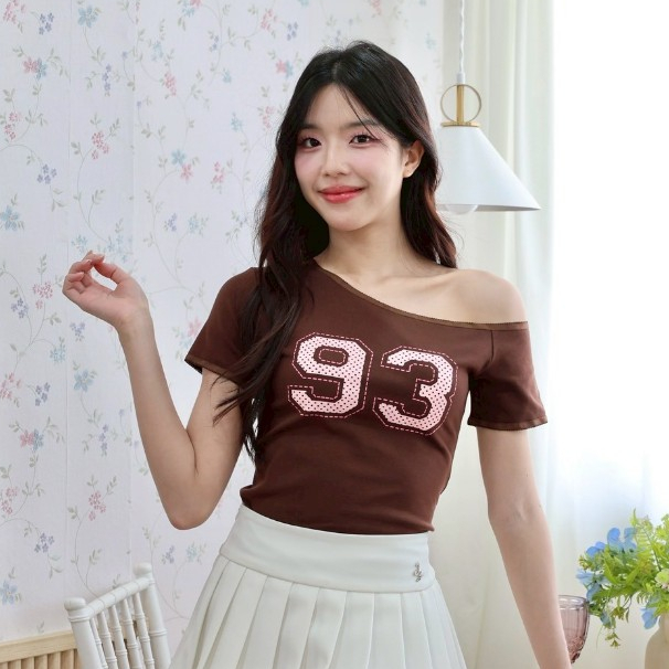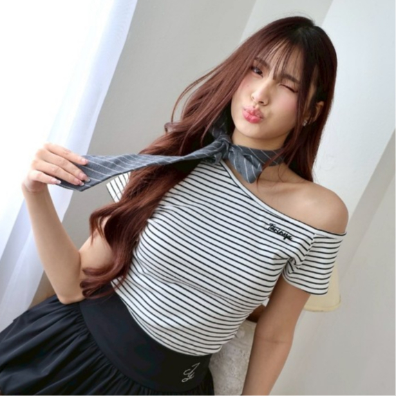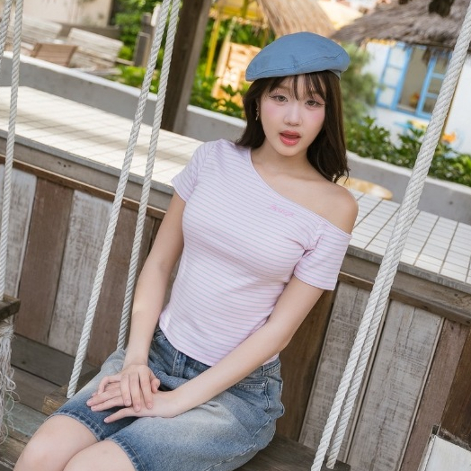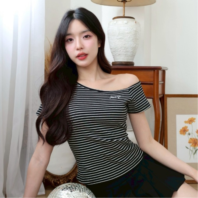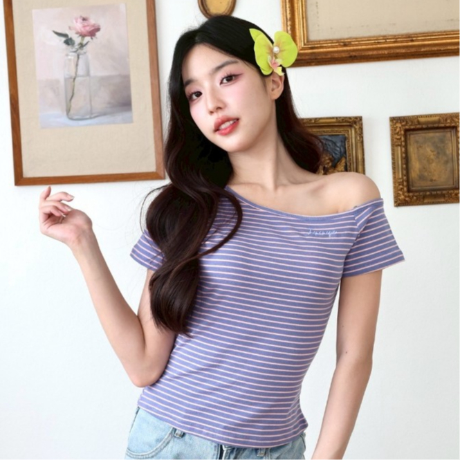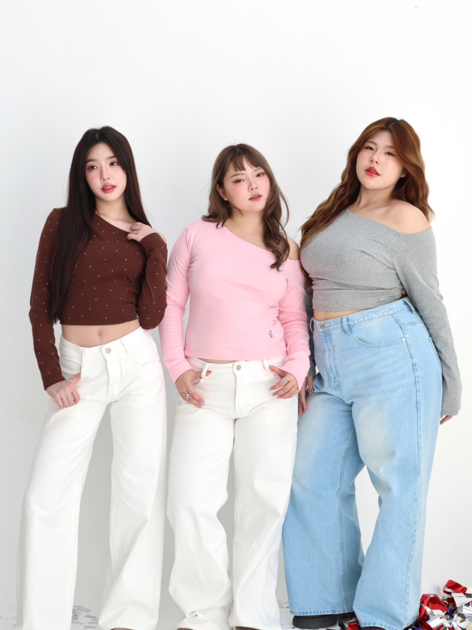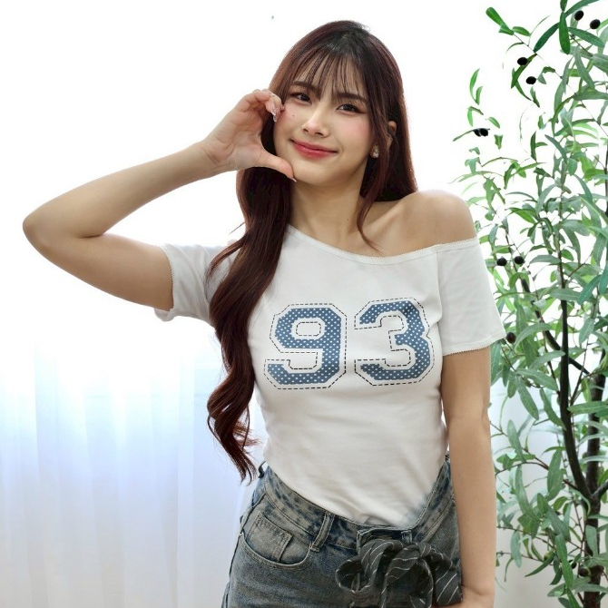 JARINYA (S-L) เสื้อปาดไหล่เฉียงเปิดไหล่ ผ้า Cotton ยืดนุ่มใส่สบาย ผ้าไม่ บาง ระบายอากาศได้ดี ทรงสวยเข้ารูป (T916)