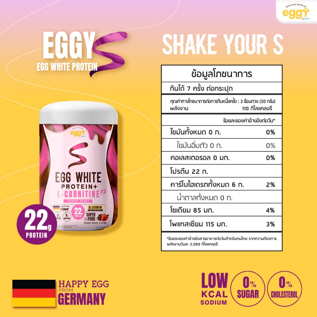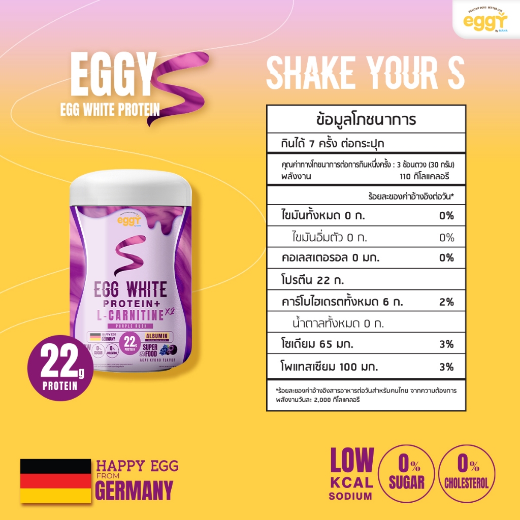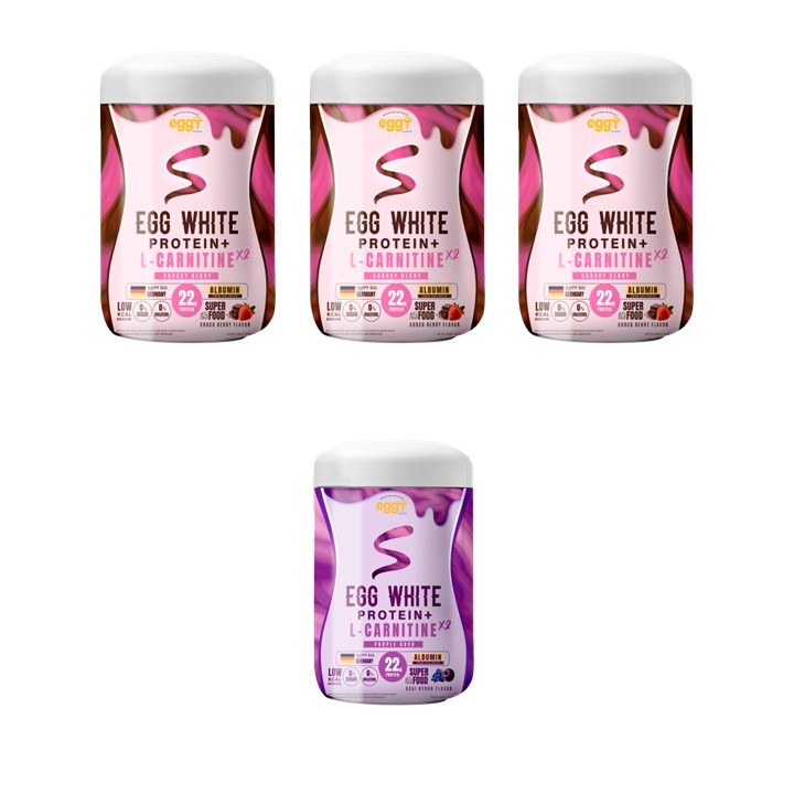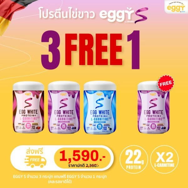Eggy - Eggy S โปรตีนไข่ขาว ปรับสูตร!! EGG WHITE PROTEIN สูตร L-CARNITINE MANA 3 ฟรี 1 กระปุก (คละรสได้)