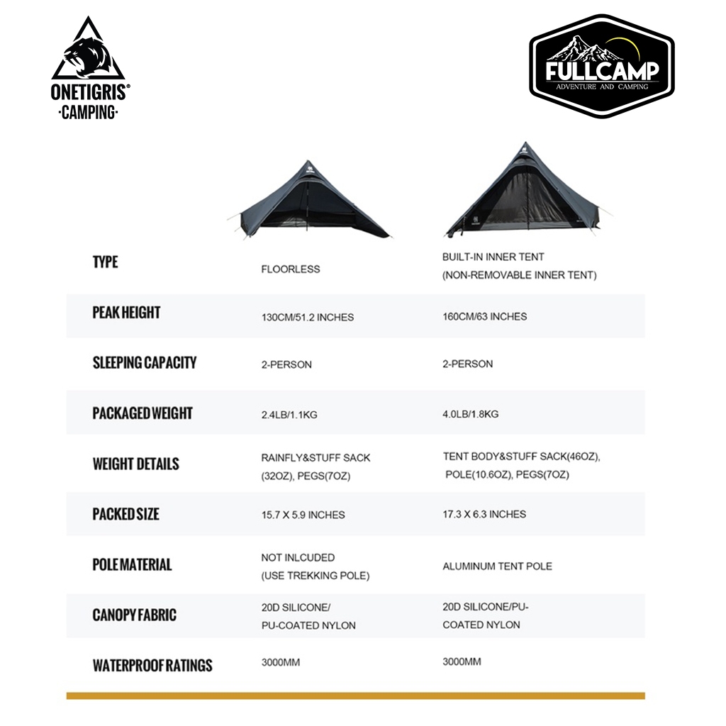 OneTigris TETRA Ultralight Tent เต็นท์กระโจมสำหรับ 2 คน เต็นท์แคมป์ปิ้ง
