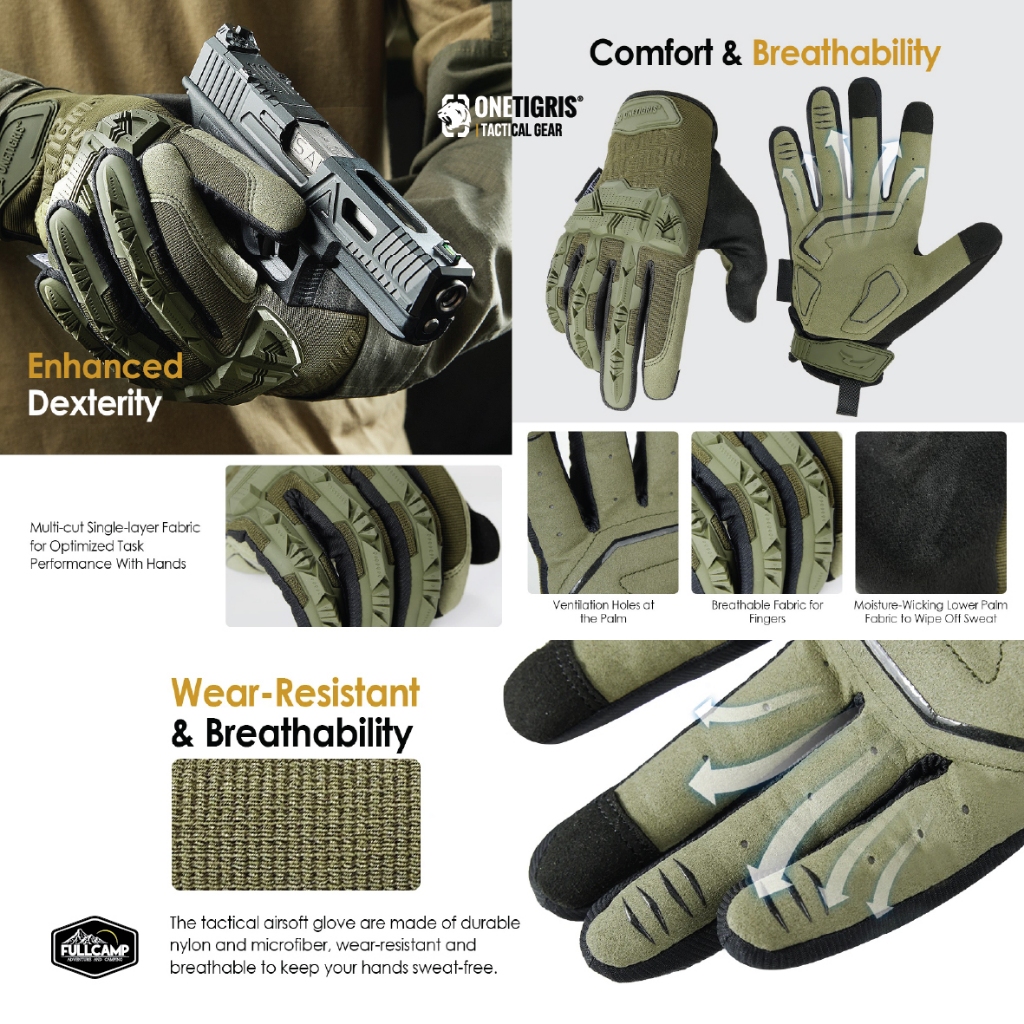 OneTigris Tactical Motorcycle Gloves ถุงมือมอเตอร์ไซค์ กันลื่น ระบายอากาศได้ดี หน้าจอสัมผัส ทนทาน