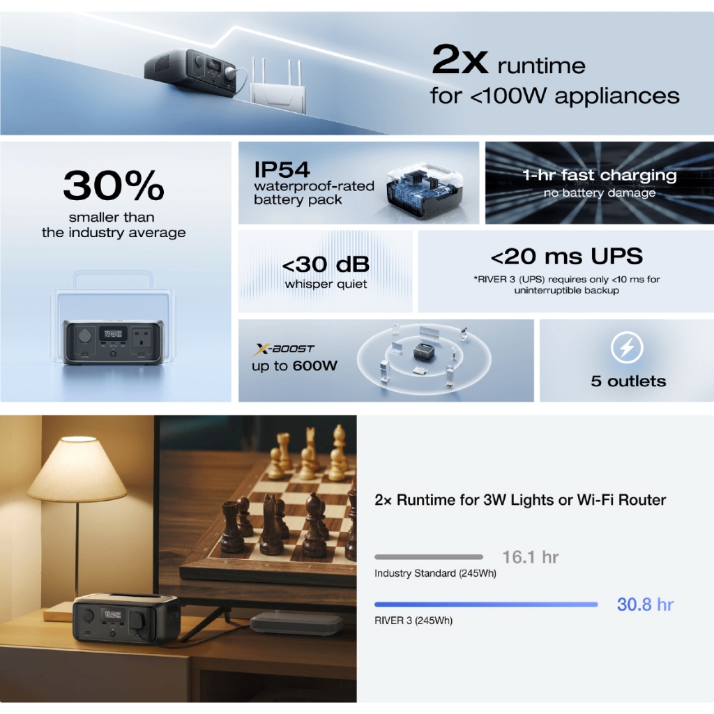 EcoFlow RIVER 3 Portable Power Station แบตเตอรี่สำรอง พกพา พาวเวอร์สเตชั่น เครื่องสำรองไฟขนาดพกพา