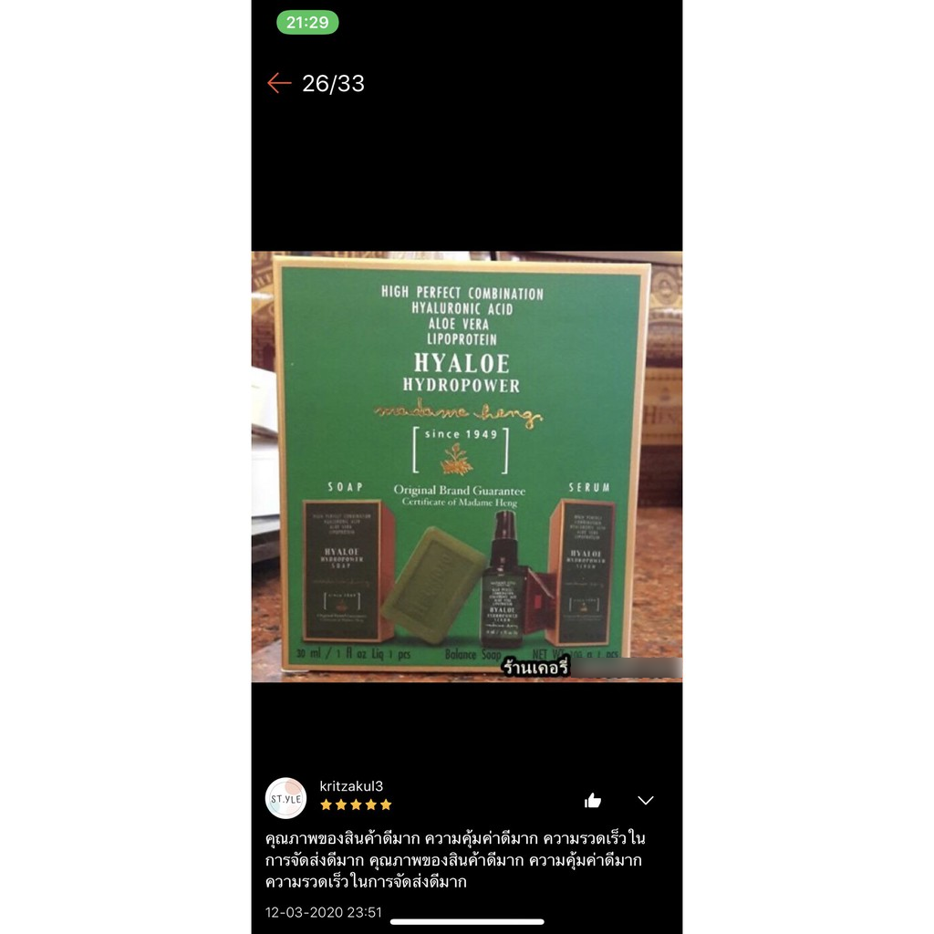 [ใส่โค้ดDETJAN30เหลือ97.-] 💖 ของแท้ มาดามเฮง เซทไฮยาโล ไฮโดพาวเวอร์ เซรั่ม 30ml + สบู่100g Hyaloe Hydropoer Madame Heng