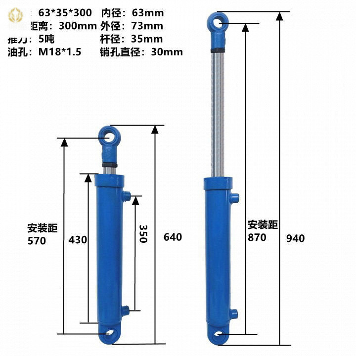 กระบอกไฮดรอลิกสองทาง 5 ตัน ขนาด 63 มม.กระบอกไฮดรอลิกสำหรับรถยนต์